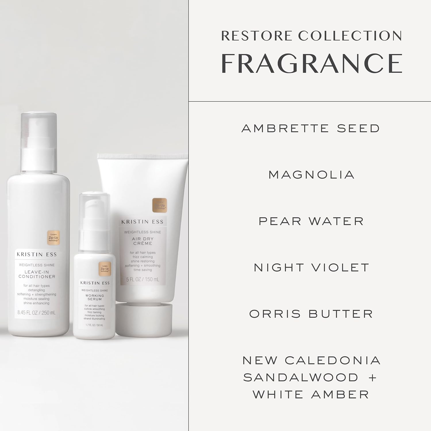 Kristin Ess Hair Weightless Shine Air Dry Cream For Curl Definition, Smoothing + Blowout Prep - Frizz Control - Light Hold - Women'S Styling Product For Frizzy, Wavy + Curly Hair - Vegan