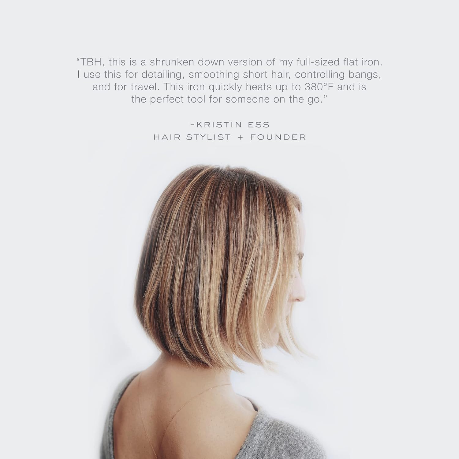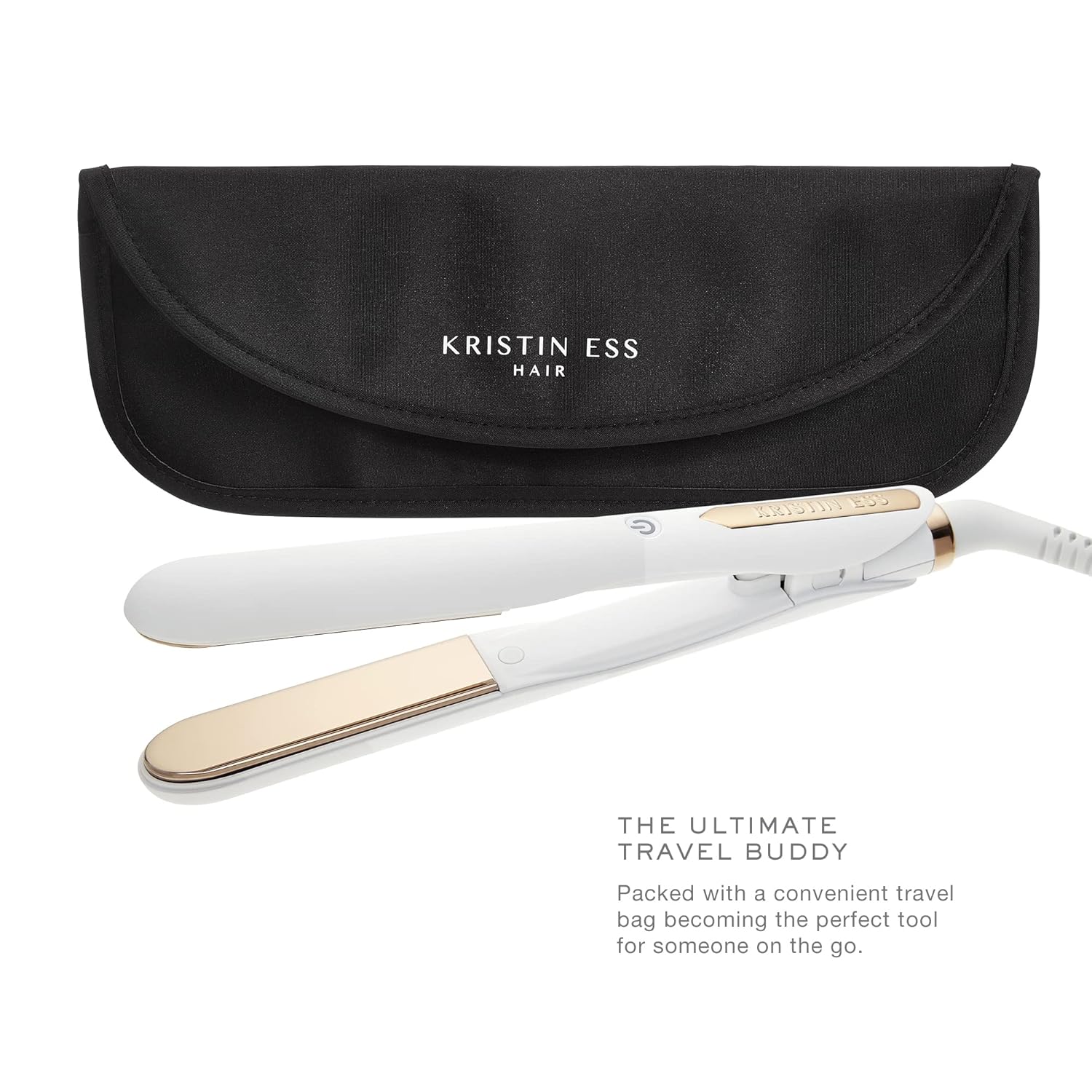 Kristin Ess Titanium Mini Flat Iron Curling Straightener For Short Hair Defining + Detailing - Travel Case, Fast Heat, Dual Voltage, Auto Shut-Off - 3/4 Inch Plates