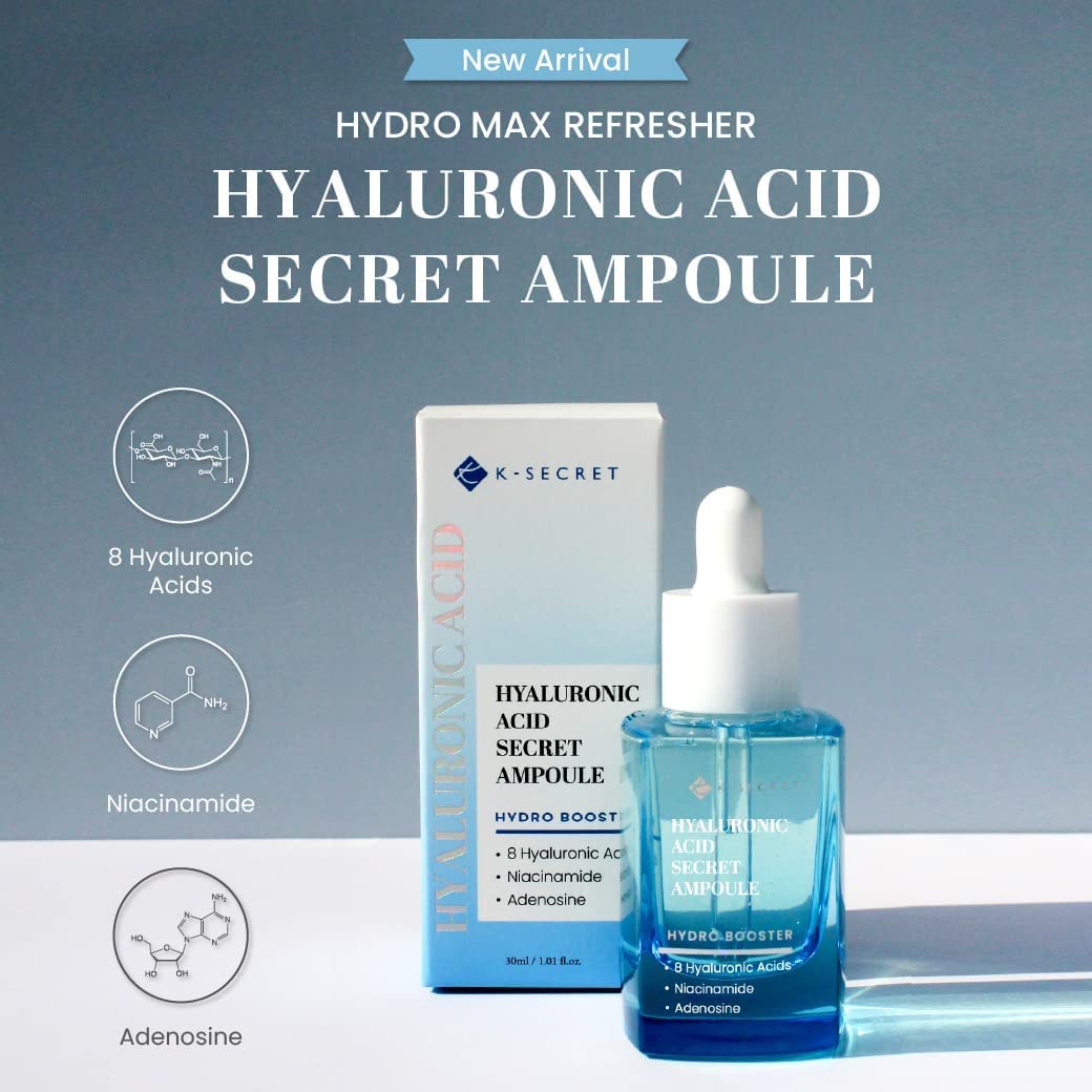 Ksecret Hyaluronic Acid Ampoule, 1.01Fl.Oz / 30Ml | Korean Skincare | Hydration Based On Sea Water For All Skin Types With 8 Types Hyaluronic Acid, Niacinamide And Adenosine