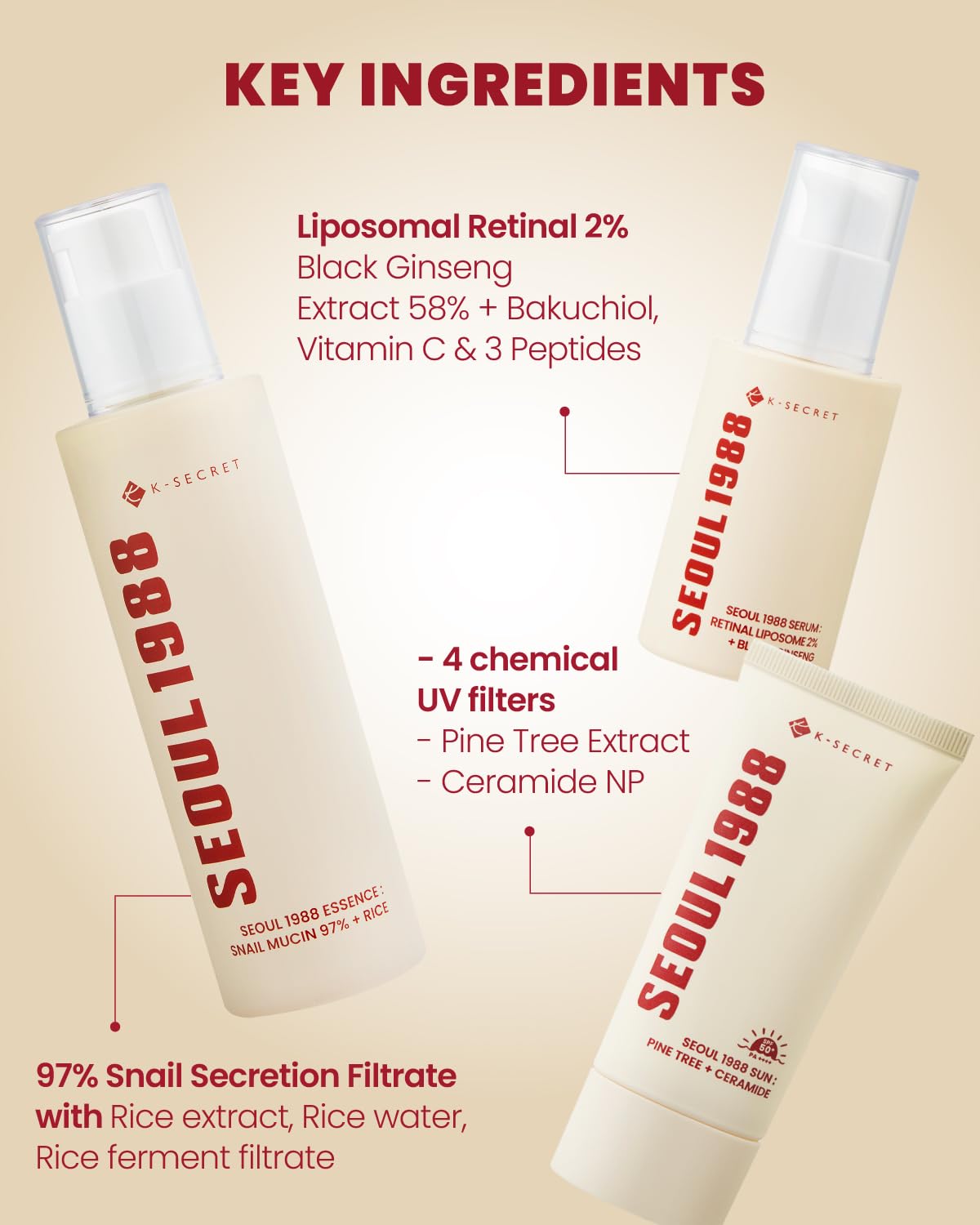Ksecret Seoul 1988 Essence 100Ml/3.38Fl.Oz, Serum 30Ml/1.01Fl.Oz & Sunscreen 50Ml/169.Fl.Oz