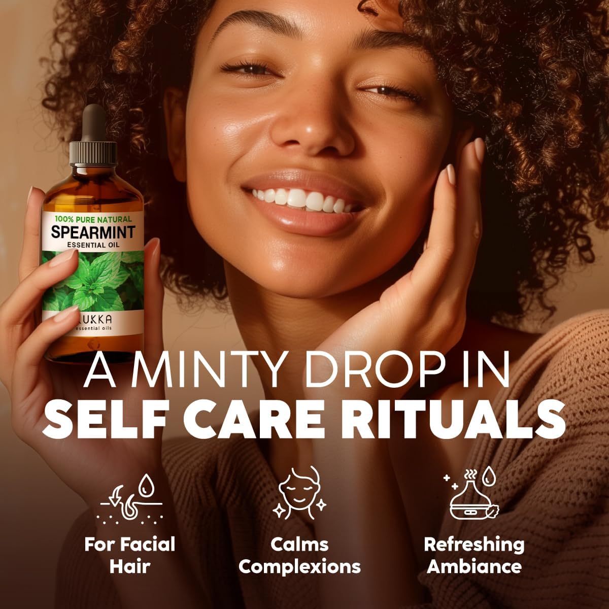 Kukka Spearmint Essential Oil For Facial Hair - 4 Fl Oz - 100% Pure Natural Aromatherapy Spearmint Oil For Skin & Hair Care Diffuser Bath Bombs Candle And Soap Making Scent & Diy