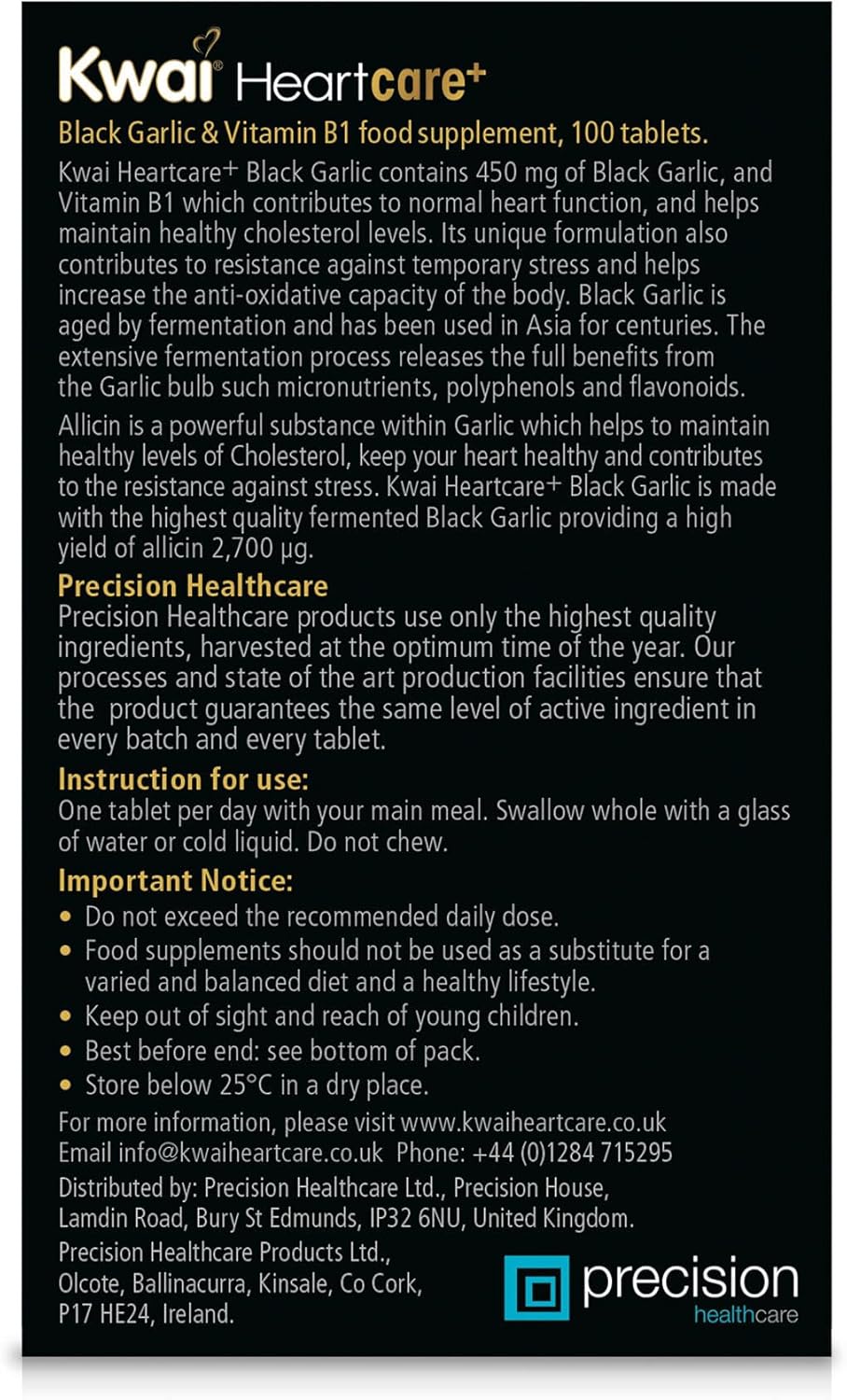 Kwai Heartcare+ Black Garlic | Garlic Capsules Odourless & Vitamin B1 I Healthy Cholesterol Levels And A Healthy Heart, Rich In Antioxidants | 450Mg Garlic Per Tablet | 100 Tablets