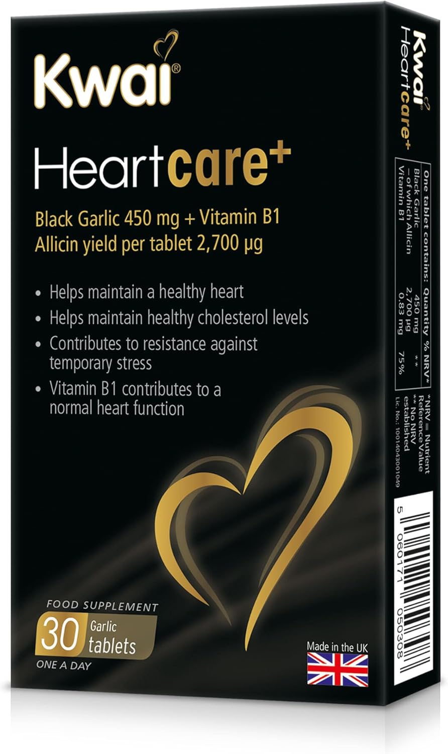 Kwai Heartcare+ Black Garlic | Garlic Capsules Odourless & Vitamin B1 I Healthy Cholesterol Levels And A Healthy Heart, Rich In Antioxidants | 450Mg Garlic Per Tablet | 30 Tablets