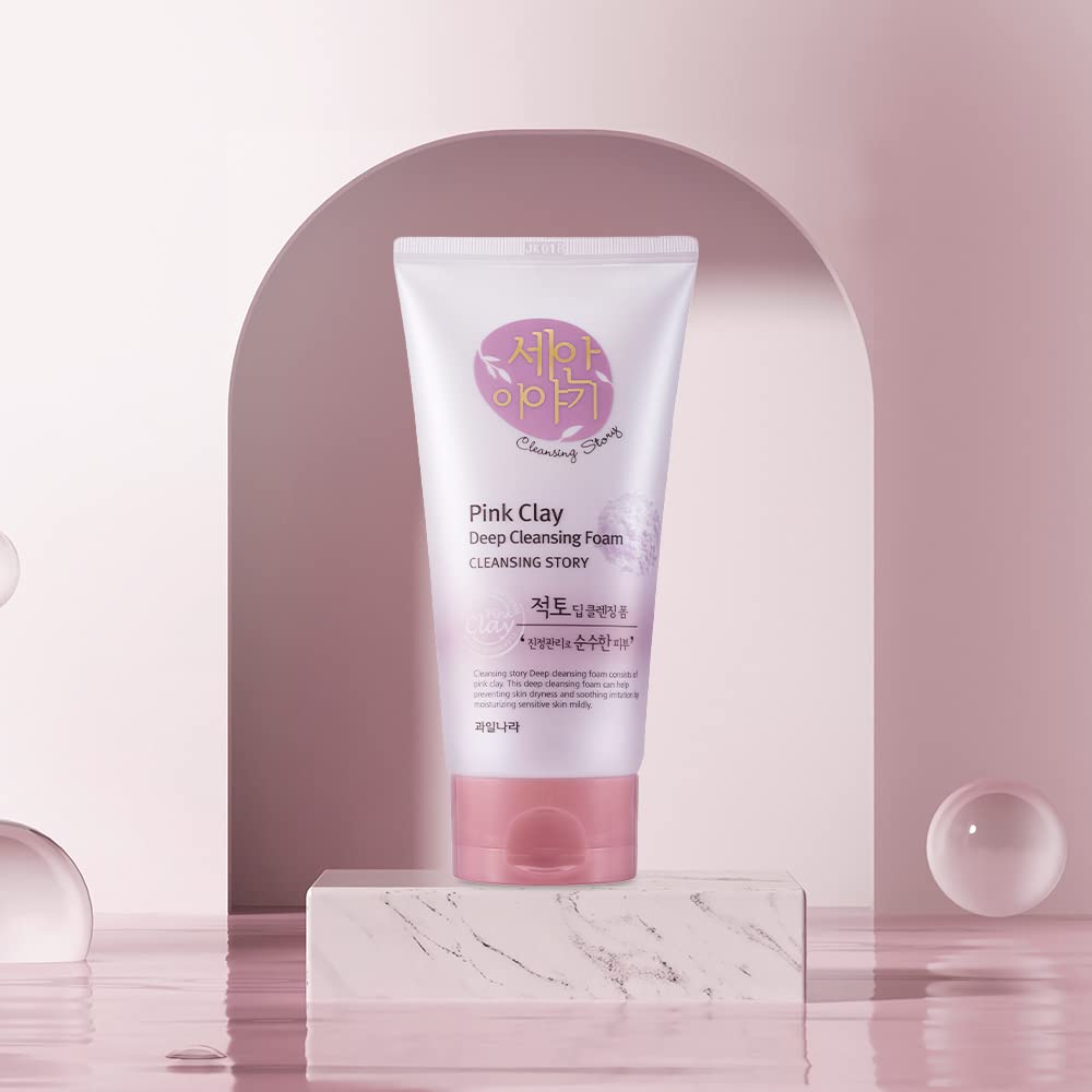 Kwailnara Cleansing Story Natural Facial Deep Foam Cleansing - Pink Clay