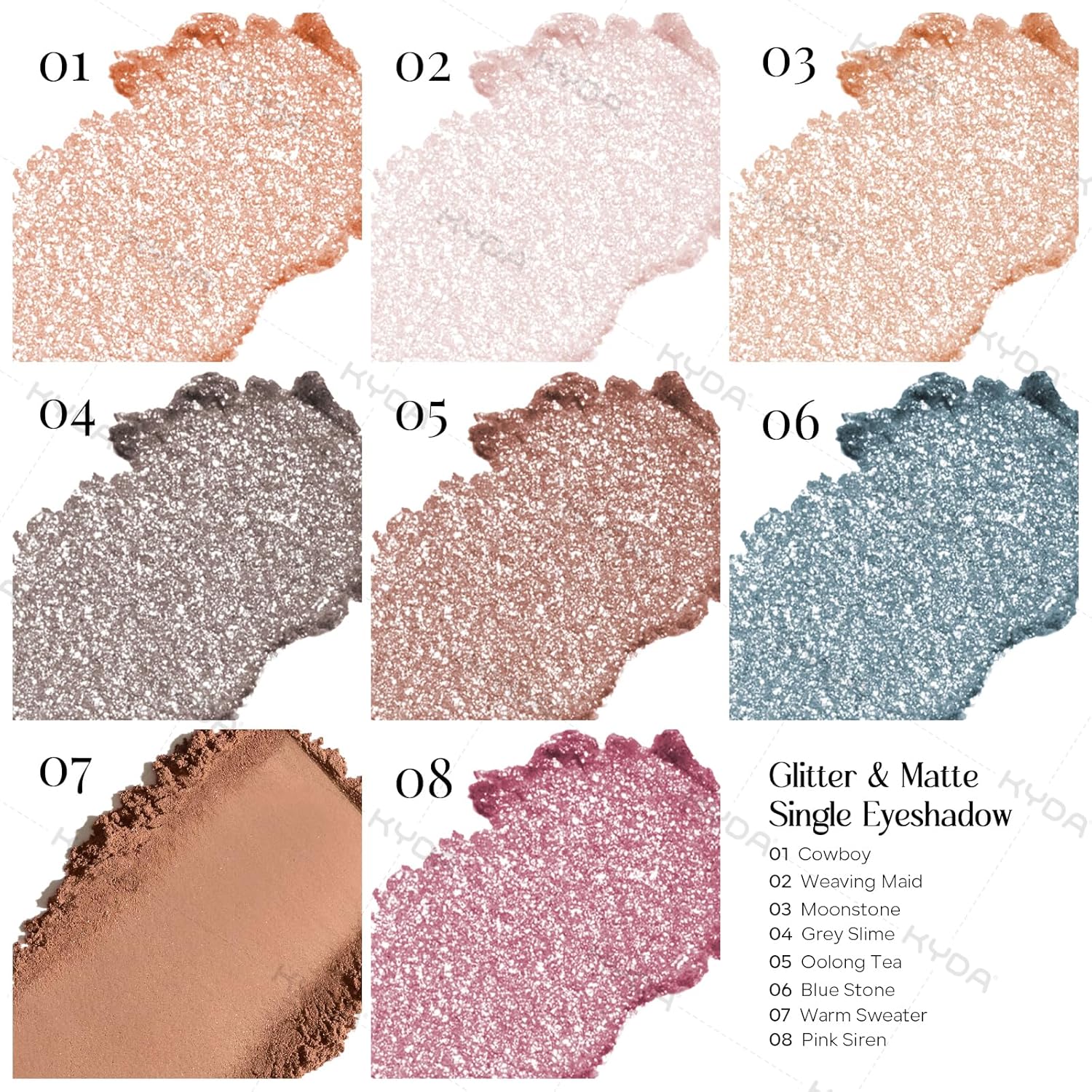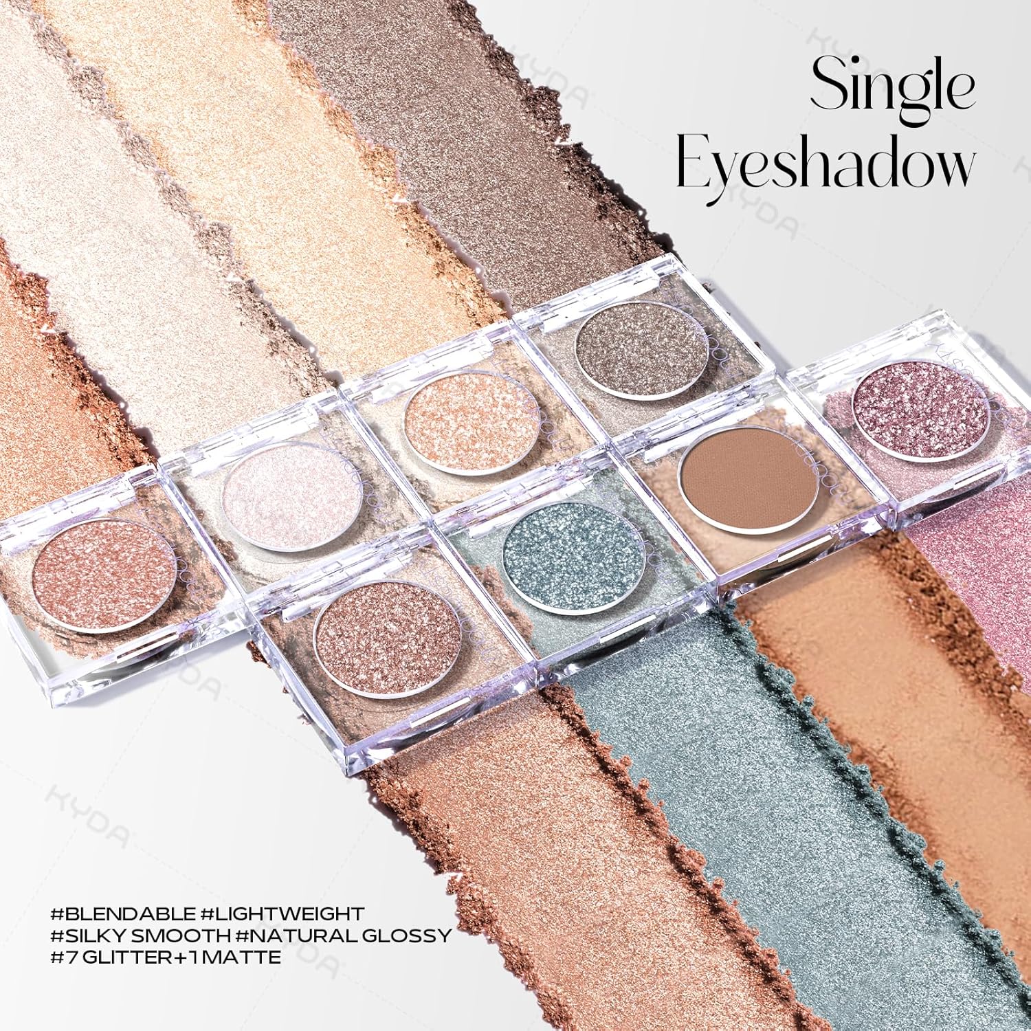 Glitter Single Powder EyeshadowHigh glossy pigment with silky smooth texture powder, we offer endless possibilities for your eyeshadow makeup, suitable for all makeup types