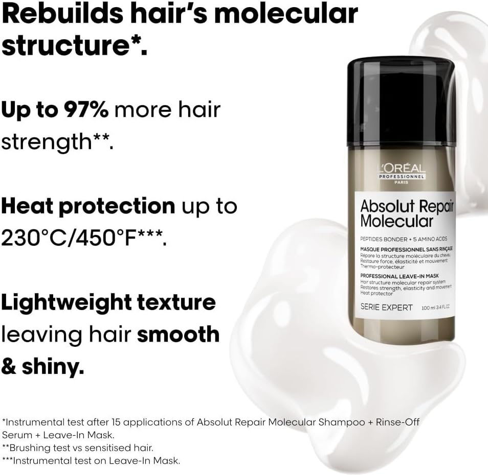 L’Oréal Professionnel Absolut Repair Molecular Leave-In Hair Mask 100Ml, For Extremely Damaged Hair, Molecular Peptides Bond Repair, Restore Strength & Elasticity, Hair Treatment