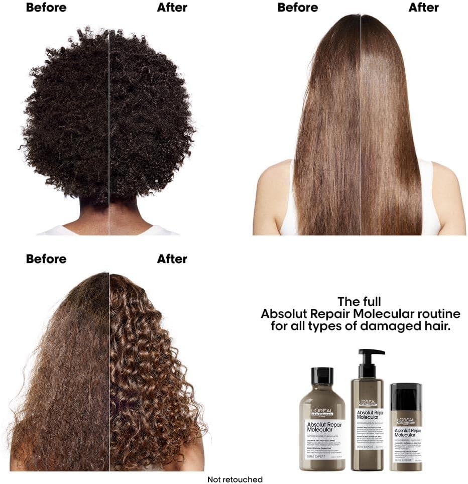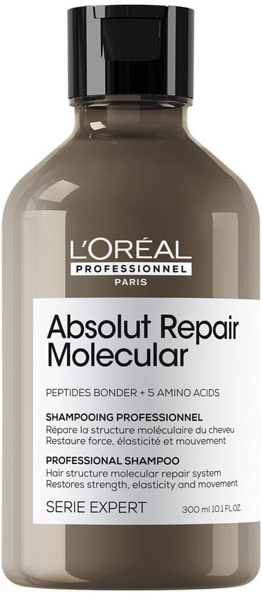 L’Oréal Professionnel Absolut Repair Molecular Sulphate Free Shampoo, For Extremely Damaged Hair, Molecular Peptides Bond Repair, Restore Strength & Elasticity