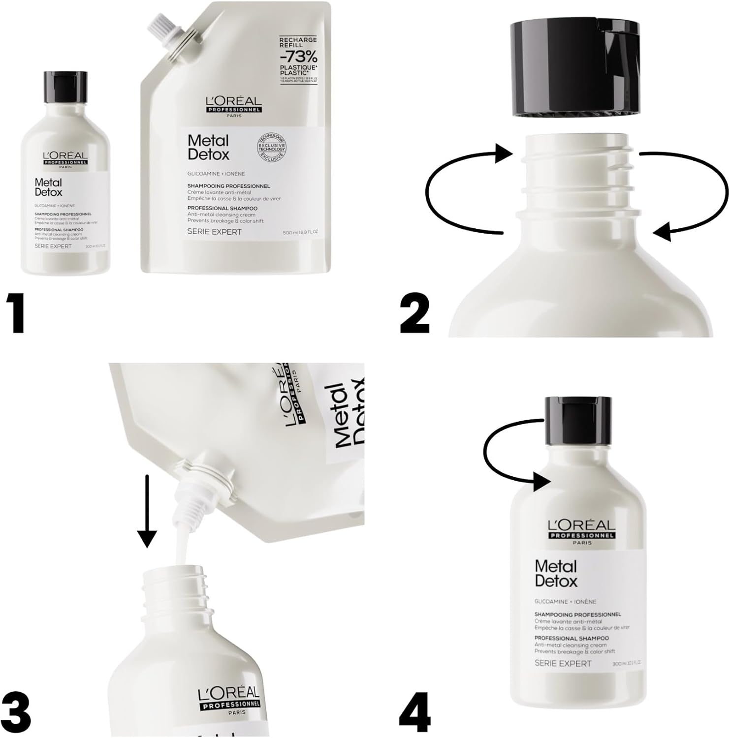 L’Oréal Professionnel Metal Detox Shampoo, Prevent Breakage & Colour Fade From Hard Water, Prevent Damaged Hair, Sulphate-Free & Vegan, Refill