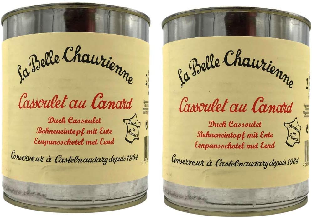 Product description La Belle Chaurienne duck cassoulet in 820g tins. Choose 1, 2 or a pack of 6 tins. Imported from France. La Belle Chaurienne have been making traditional French cassoulets, terrines and pates for more than 50 years in the south of France. Ingredients: lingot beans 35%, water, precooked duck drumettes 20% (origin: France), salt, grilled Toulouse sausage 12% (pork meat and fat (origin: EU), water, natural pork casing, salt, pepper), tomato puree, salt, duck fat, garlic, pepper. Nutritional values per 100g – energy: 557kJ / 134Kcal, carbohydrates: 6.7g including sugars 0.5g, fat: 6g of which saturated: 2.2g, proteins:11g, salt 0.8g. Ingredients Lingot beans 34% - Water - Grilled Toulouse sausages 17% (pork meat and fat from France or Spain, water, natural pork casing, salt, pepper) - Precooked duck sleeves 16% (duck sleeves from France, salt ) - Tomato concentrate - Salt - Duck fat - Garlic - Pepper (% expressed at implementation),La Belle Chaurienne Duck Cassoulet,840g tins x 1,2 or 6,This authentic French cassoulet au canard is ready to heat and serve from the tin,La Belle Chaurienne have been making traditional French cassoulets, terrines and pates for more than 50 years in the south of France