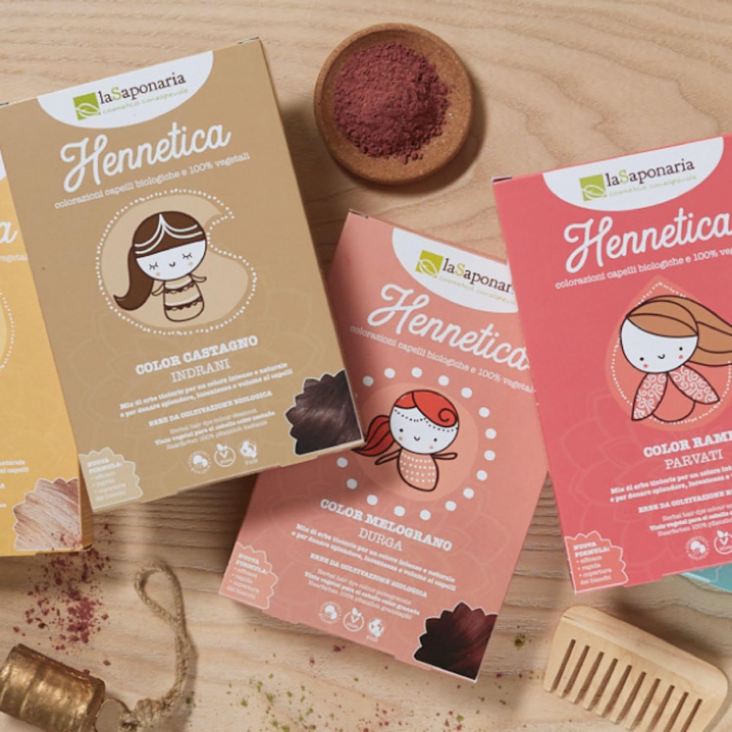 About The Product : Natural Cosmetics for hair – Vegetable Dyed hennetica Pomegranate the saponaria