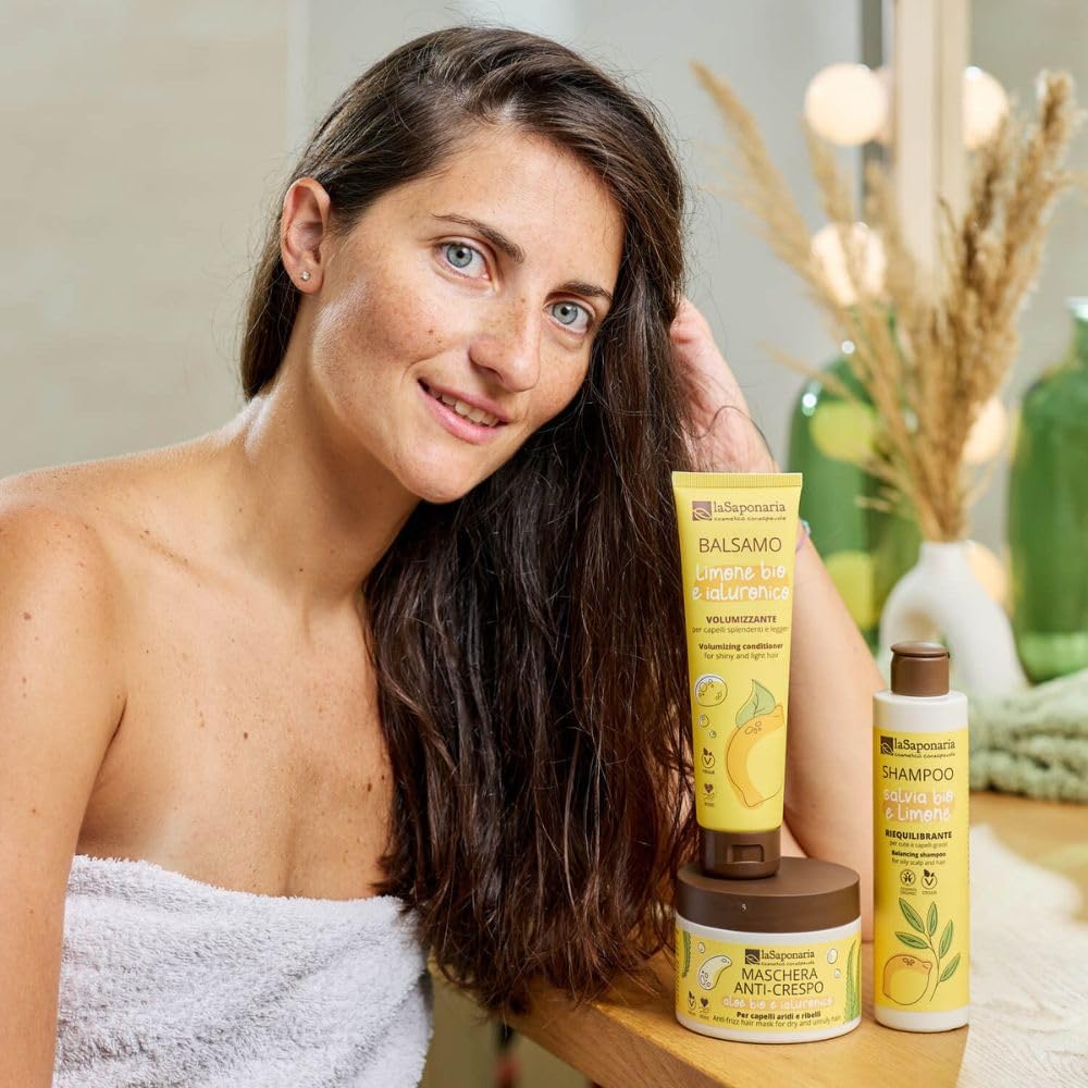 La Saponaria Sage & Lemon Shampoo, Oily Hair, Anti-Dandruff, Moisturising, Purifying, Sles, Gmos, Pegs Or Parabens Free, Natural, Vegan, Cruelty-Free, Bio Plastic, Organic, 200Ml