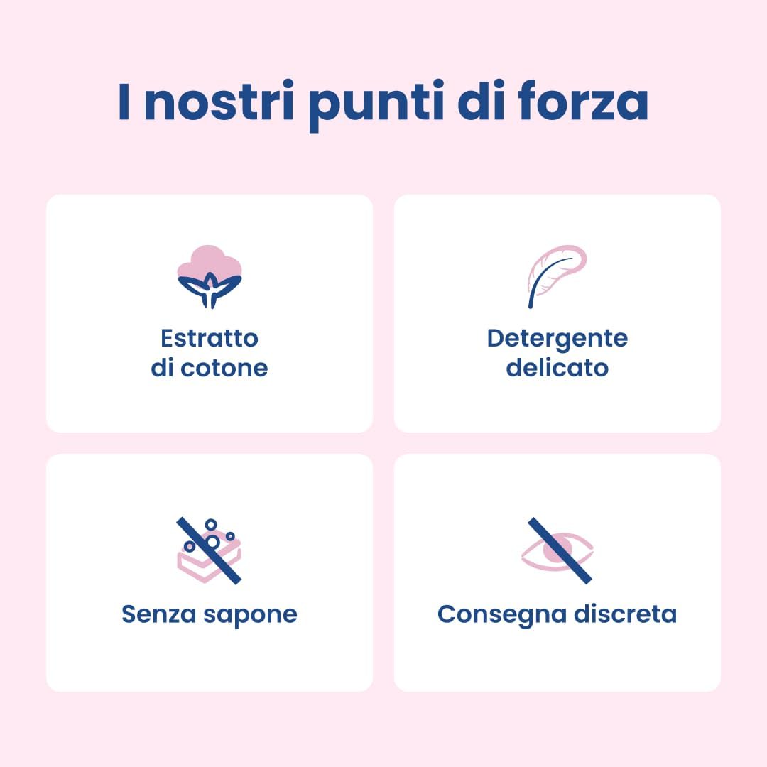 Sensitive formula: based on natural lactic acid that strengthens intimate defenses and enriched with cotton extract that reduces intimate discomfort and gives a feeling of delicacy and cleanliness