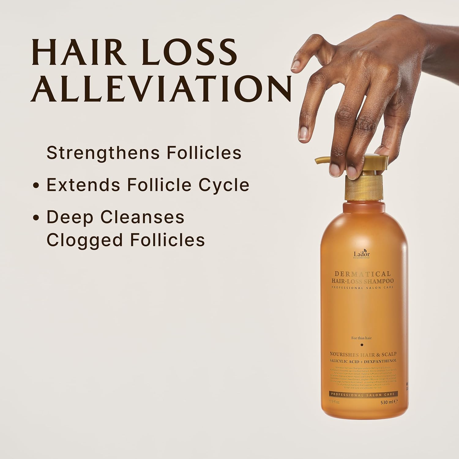 La'Dor Dermatical Anti Hair Loss & Hair Growth Shampoo - Deep Cleanse, Nourish, Soothe Damaged Scalp W/Salicylic Acid, Dexpanthenol, Niacinamide, Menthol (17.9 Fl Oz, Normal To Dry Hair)