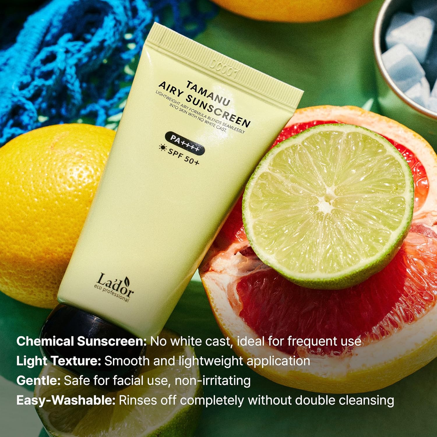 La'Dor Tamanu Airy Sunscreen Daily Uv Defense Invisible Lightweight Airy Fit Finish No White Cast Non-Greasy Non-Oily Hydrating Spf 50+ Pa++++ Sun Protection Care Korean Skincare