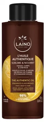 Laino The Authentic Oil 100Mlis A Hypoallergenic Multifunctional Dry Oil That Nourishes And Sublimates The Skin And Hair. Thanks To The 4 Oils Of Olive, Argan, Apple Seed And Sweet Almond Brings Comfort And Suppleness To The Skin. The Sensations Of Discomfort Are Decreased, The Skin Is Illuminated And Softened, The Hair Is Silky And Shiny. 98% Natural Ingredients. Made In France