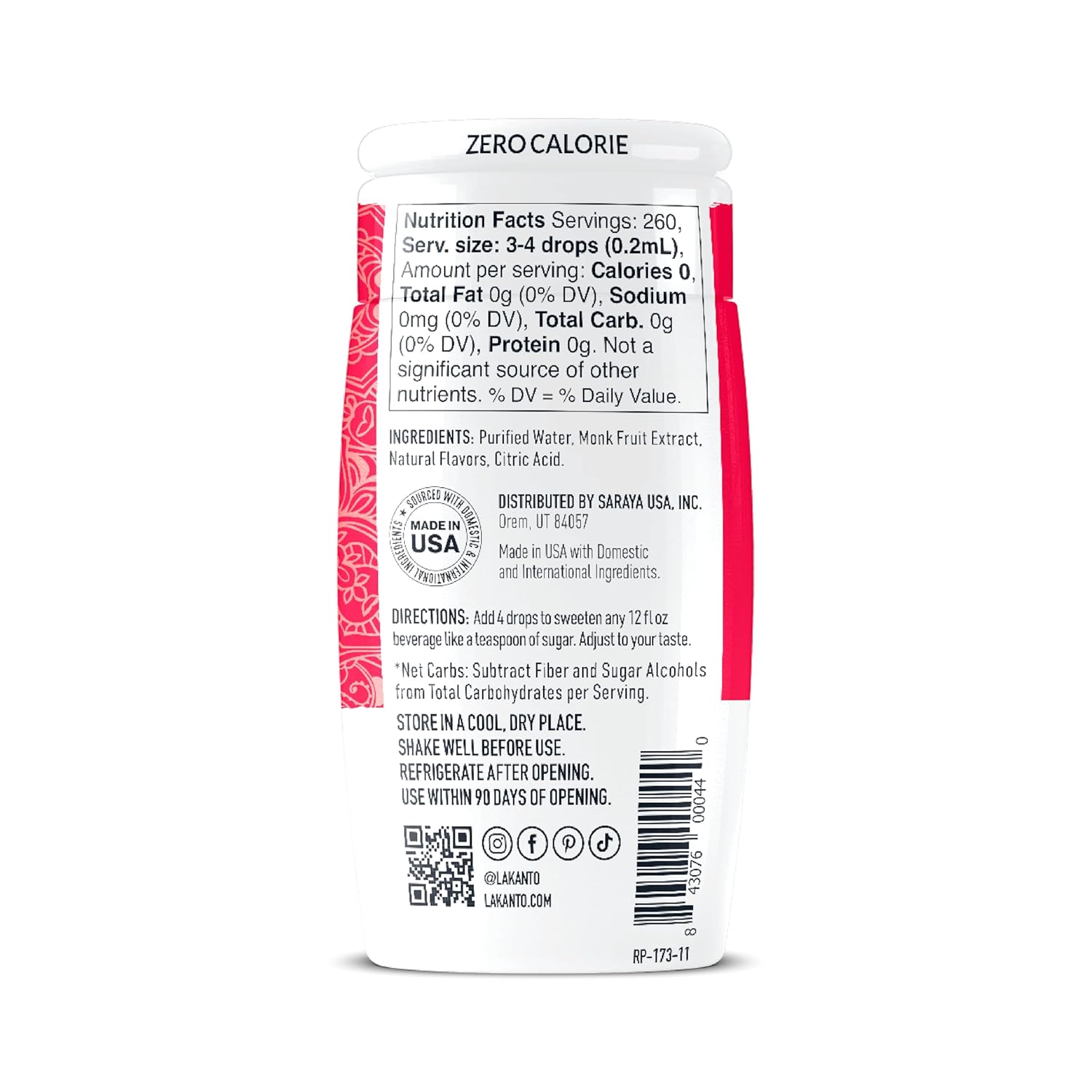 About this item ZERO CALORIES: Enjoy guilt-free sweetness with Lakanto Liquid Monk Fruit Extract Drops! With this zero calorie sugar alternative making it perfect for sweetening your favorite beverages without the negative impact on your dietary goals. Ideal for coffee, tea, smoothies, and more! NO ERYTHRITOL, NO AFTERTASTE: Lakanto Liquid Monk Fruit Sweetener provides a clean, smooth sweetness without the bitterness or aftertaste often associated with other sugar substitutes. Formulated without erythritol or artificial sweeteners, this product is ideal for those sensitive to sugar content. VERSATILE & CONVENIENT: Add a few drops of Lakanto Liquid Monk Fruit Sweetener to your beverages anytime, anywhere. It’s portable and easy to use, making it perfect for on the go sweetness. Whether at home, at the office, or traveling, enjoy the sweetness without added sugars or carbs. KETO FRIENDLY, VEGAN & NON GMO: Lakanto Liquid Monk Fruit Sweetener is designed to fit seamlessly into a variety of lifestyles, including keto, paleo, and vegan. This versatile sweetener contains no carbs, sugars, or animal products, making it the perfect choice for those looking to enhance their beverages without compromising dietary preferences. Plus, it's non GMO, so you can enjoy every drop knowing it's made with quality, natural ingredients! EXPLORE OTHER LAKANTO PRODUCTS: Lakanto offers more than just sweeteners! Check out our wide range of sugar alternatives and delicious products, including baking mixes, syrups, chocolate, drink mixes, and sweet treats. Whatever your sweet tooth desires, Lakanto has an option that fits your dietary preferences. › See more product details,ZERO CALORIES: Enjoy guilt-free sweetness with Lakanto Liquid Monk Fruit Extract Drops! With this zero calorie sugar alternative making it perfect for sweetening your favorite beverages without the negative impact on your dietary goals. Ideal for coffee, tea, smoothies, and more!,NO ERYTHRITOL, NO AFTERTASTE: Lakanto Liquid Monk Fruit Sweetener provides a clean, smooth sweetness without the bitterness or aftertaste often associated with other sugar substitutes. Formulated without erythritol or artificial sweeteners, this product is ideal for those sensitive to sugar content,VERSATILE & CONVENIENT: Add a few drops of Lakanto Liquid Monk Fruit Sweetener to your beverages anytime, anywhere. It’s portable and easy to use, making it perfect for on the go sweetness. Whether at home, at the office, or traveling, enjoy the sweetness without added sugars or carbs,KETO FRIENDLY, VEGAN & NON GMO: Lakanto Liquid Monk Fruit Sweetener is designed to fit seamlessly into a variety of lifestyles, including keto, paleo, and vegan. This versatile sweetener contains no carbs, sugars, or animal products, making it the perfect choice for those looking to enhance their beverages without compromising dietary preferences. Plus, it's non GMO, so you can enjoy every drop knowing it's made with quality, natural ingredients!,EXPLORE OTHER LAKANTO PRODUCTS: Lakanto offers more than just sweeteners! Check out our wide range of sugar alternatives and delicious products, including baking mixes, syrups, chocolate, drink mixes, and sweet treats. Whatever your sweet tooth desires, Lakanto has an option that fits your dietary preferences