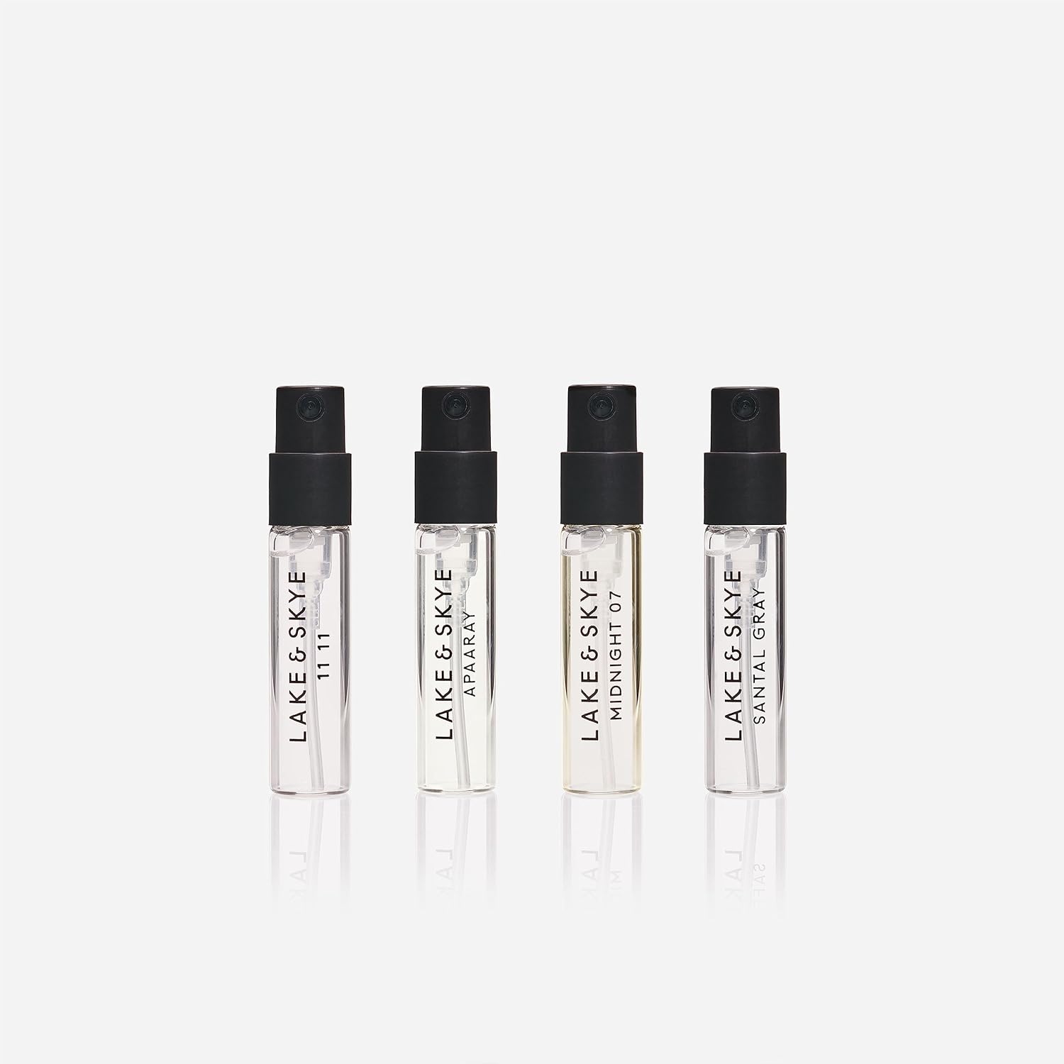 About this item Unisex Fragrance: This discovery set featuring six spray vials of our favorite Eau de Parfums: 11 11, our NEWEST scent 11 11 Azure, Apaaray, Midnight 07, Saffron Dusk, and Santal Gray. Our best-selling Eau de Parfums in a six-piece discovery set. Perfect for trial, layering to create your own signature scent or gifting. Perfect for trial and discovery. Create your own signature scent Responsibly Sourced: Paraben free, phthalate free and sulfate free, as well as vegan and cruelty free. Best-in-ingredients: At Lake & Skye we use natural ingredients whenever possible, including organic sugar cane alcohol in perfumes and 100% soy base in our candles. › See more product details,Unisex Fragrance: This discovery set featuring six spray vials of our favorite Eau de Parfums: 11 11, our NEWEST scent 11 11 Azure, Apaaray, Midnight 07, Saffron Dusk, and Santal Gray,Our best-selling Eau de Parfums in a six-piece discovery set. Perfect for trial, layering to create your own signature scent or gifting,Perfect for trial and discovery. Create your own signature scent,Responsibly Sourced: Paraben free, phthalate free and sulfate free, as well as vegan and cruelty free,Best-in-ingredients: At Lake & Skye we use natural ingredients whenever possible, including organic sugar cane alcohol in perfumes and 100% soy base in our candles
