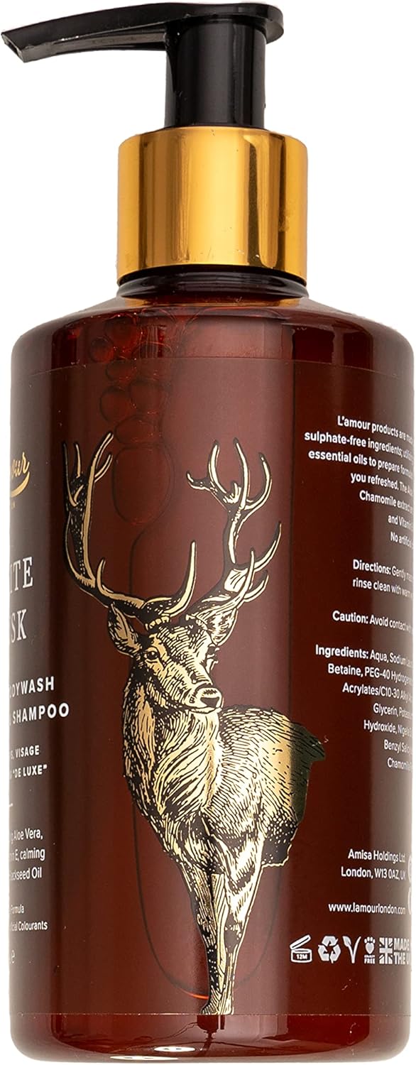 L'Amour Natural | Black Oud | Luxury Face Wash, Body Wash & Shampoo | Essential Oils | Sulphate Free | Gentle For Dry And Sensitive Skin | 250Ml