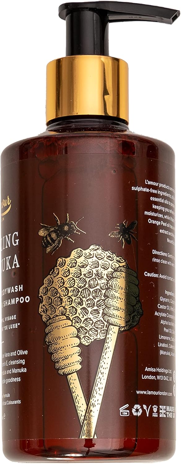 L'Amour Natural | Buzzing Manuka | Luxury Hand Wash | Essential Oils | Sulphate Free | Gentle For Dry And Sensitive Skin | 250Ml