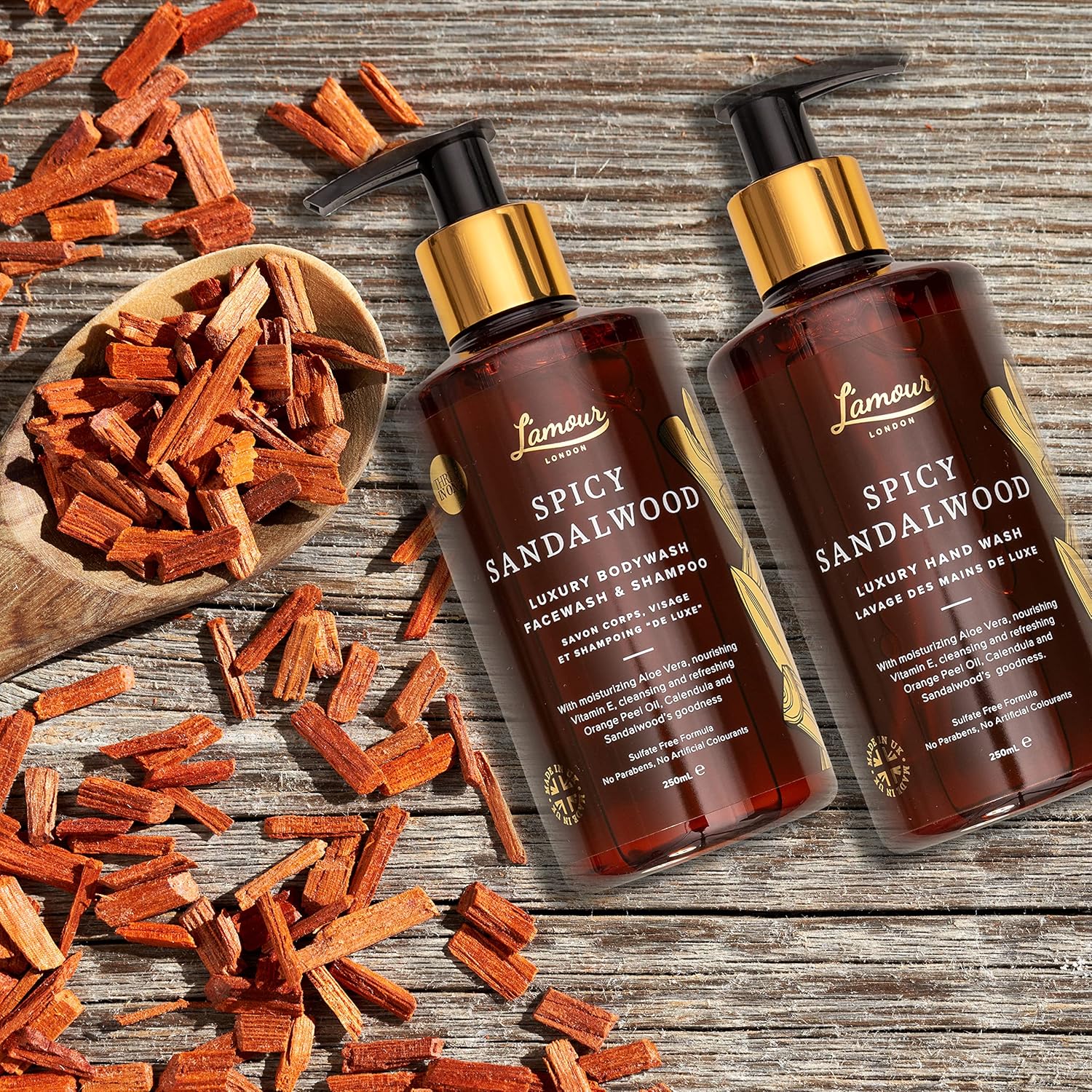 L'Amour Natural | Spicy Sandalwood | Luxury Face Wash, Body Wash & Shampoo | Essential Oils | Sulphate Free | Gentle For Dry And Sensitive Skin | 250Ml