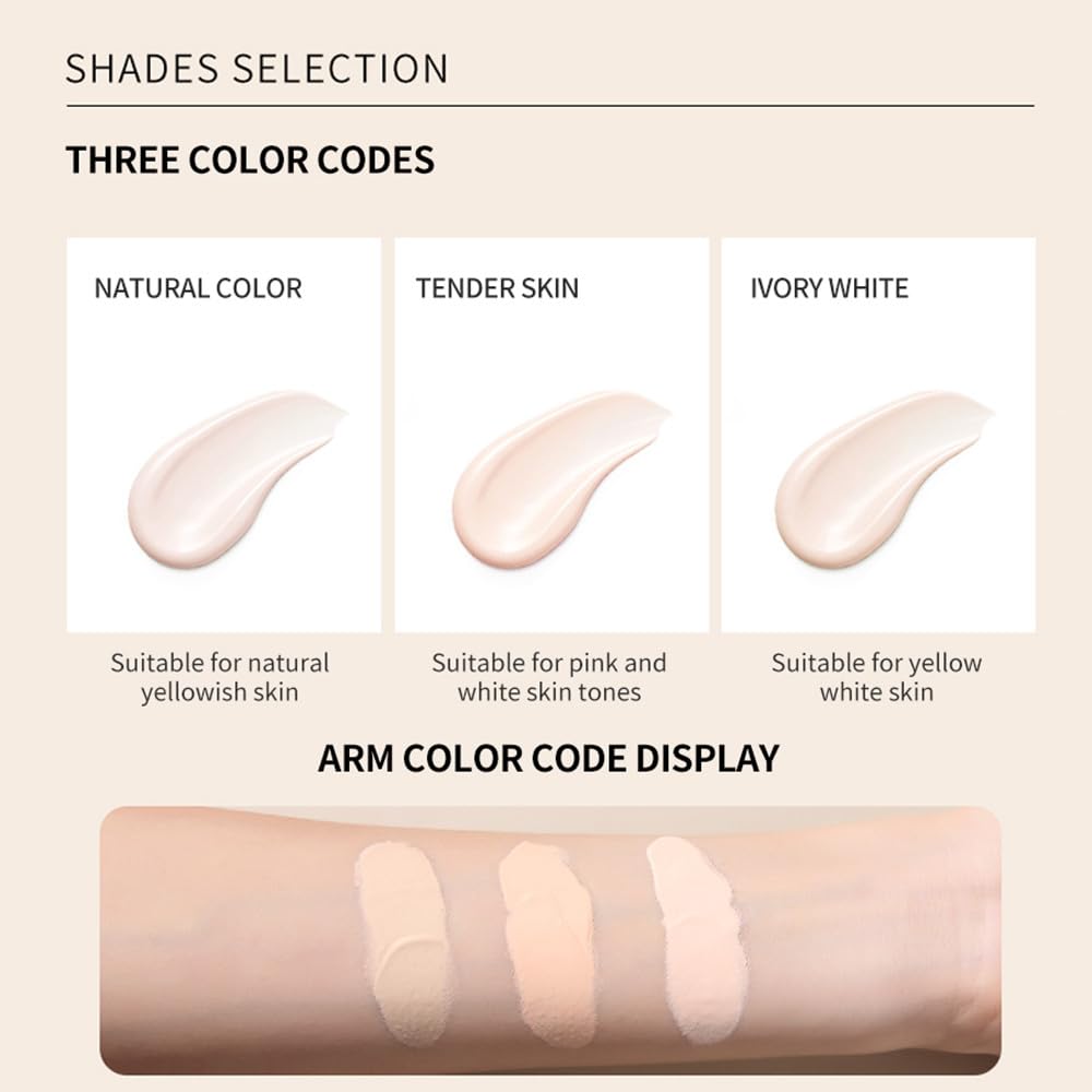 Full Coverage: The full coverage foundation will correct and perfect skin imperfections such as uneven skin tone and under eye circles, provides you seamless, flawless camouflage in smooth and nature finish