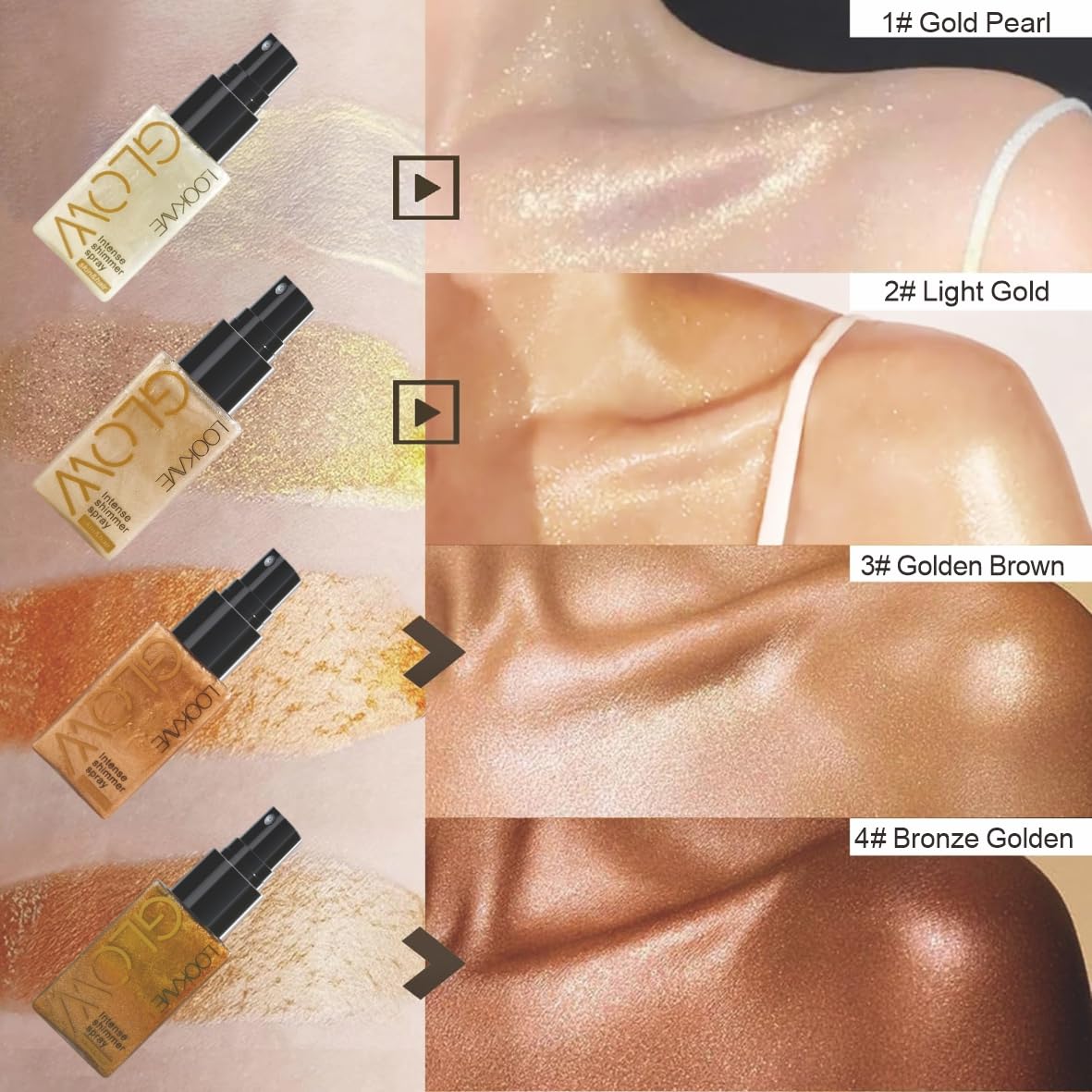 4 Colors Available: There are 4 different colors available for you, include 1# Gold Pearl, 2# Light Gold, 3# Golden Brown, 4# Bronze Golden. You can choose the suitable color to make yourself charming