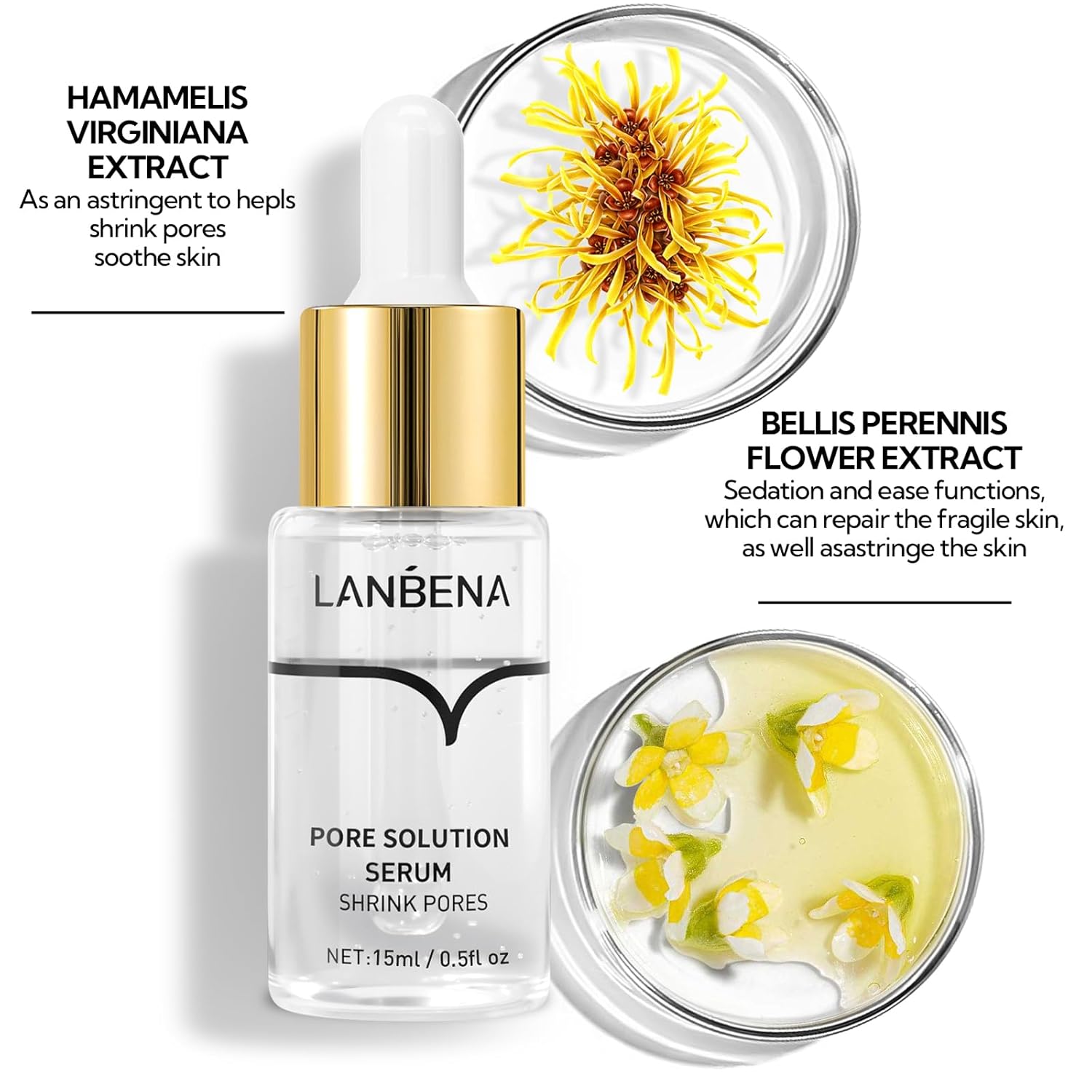 Lanbena Pore Minimizer Serum, Pore Minimizer & Reducer For Face, Minimizing, Shrinking, Oil Control Firming, Tightening Pores, 100% Vegan Pore Moisture After Blackhead Remover, 0.5 Fl.Oz