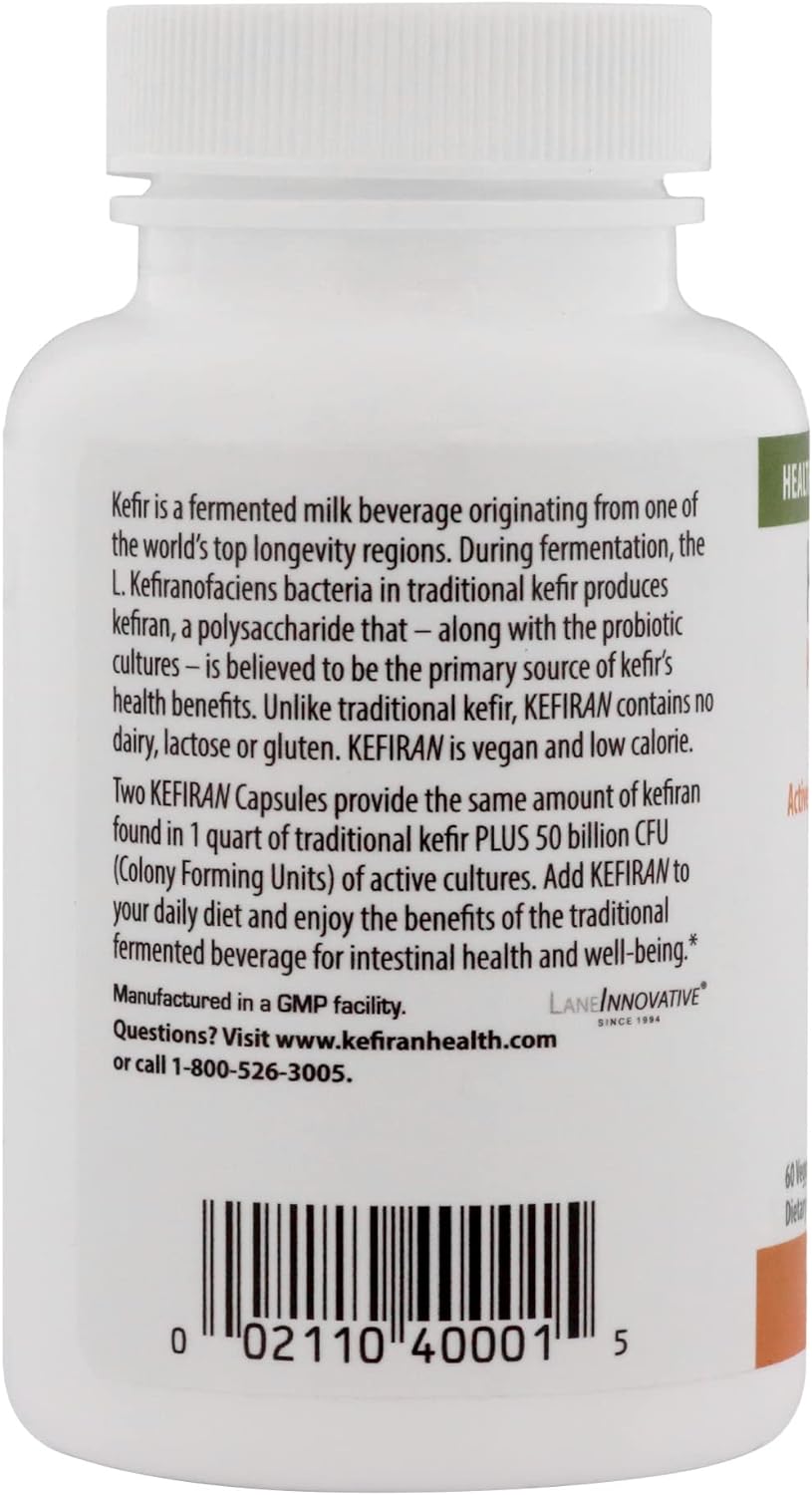 3 >THE BEST OF KEFIR IN A CAPSULE: KEFIRAN offers the best of the traditional kefir drink, but in an easy-to-swallow veggie capsule. KEFIRAN gives you 20mg of kefiran, the kefir polysaccharide PLUS 50 billion active probiotic cultures in a daily serving of just two capsules