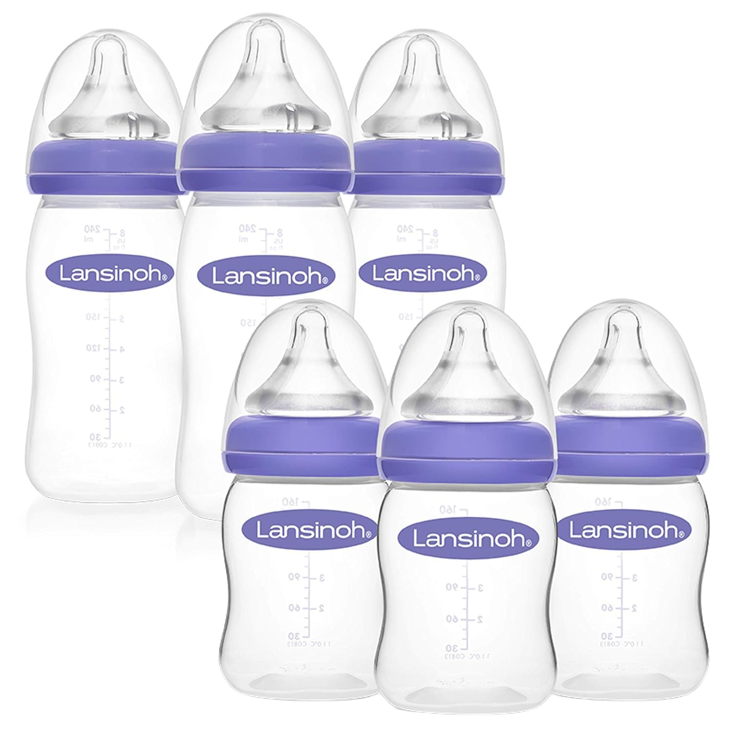 Lansinoh Anti-Colic Baby Bottles For Feeding Babies, 3 Count Each Of 5 Ounces And 8 Ounces, 6 Bottles Total, Includes 3 Medium Flow Nipples (Size M) And 3 Slow Flow Nipples (Size S)