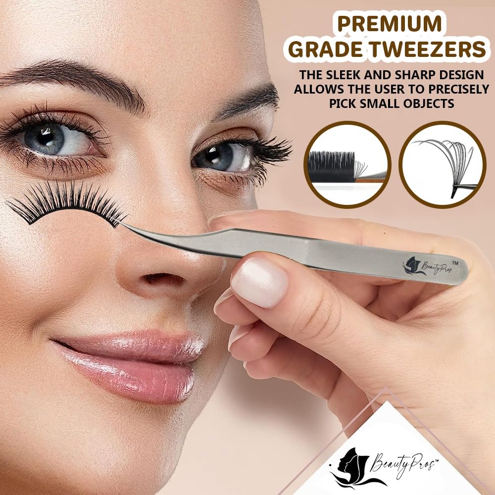 About this item Stainless Steel - These eyelash tweezers are made of stainless steel, which is a durable and easy-to-clean material that resists rust and corrosion. The tweezers are designed with a 45-degree angle to make it easy to pick up and place eyelash extensions accurately. Precision Application - Our durable lash extension tweezers make it easy to remove even the smallest hairs with our eyelash kit and our specialized coating ensures they stay sharp, even with frequent use. Get perfect eyebrows and facial hair grooming with our Eyelash Tweezers today! Attractive Design - The ergonomic design of the tweezers allows for a comfortable grip and improved control, which helps to minimize the risk of dropping the tweezers. This tweezer set is designed for eyelash extensions. The shape and handle are also designed to provide maximum visibility, which allows for more accurate placement of the eyelash extensions. Usage - Our eyelash extension tweezers are intended to help separate ultra-fine lashes and provide precision and control during the application process. It can be used by lash technicians and artists to achieve a variety of effects, such as 3D or 6D extensions. See more product details,Stainless Steel - These eyelash tweezers are made of stainless steel, which is a durable and easy-to-clean material that resists rust and corrosion. The tweezers are designed with a 45-degree angle to make it easy to pick up and place eyelash extensions accurately,Precision Application - Our durable lash extension tweezers make it easy to remove even the smallest hairs with our eyelash kit and our specialized coating ensures they stay sharp, even with frequent use. Get perfect eyebrows and facial hair grooming with our Eyelash Tweezers today!,Attractive Design - The ergonomic design of the tweezers allows for a comfortable grip and improved control, which helps to minimize the risk of dropping the tweezers. This tweezer set is designed for eyelash extensions. The shape and handle are also designed to provide maximum visibility, which allows for more accurate placement of the eyelash extensions,Usage - Our eyelash extension tweezers are intended to help separate ultra-fine lashes and provide precision and control during the application process. It can be used by lash technicians and artists to achieve a variety of effects, such as 3D or 6D extensions