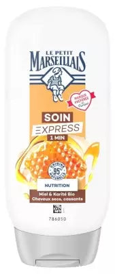 Le Petit Marseillais Soin Express 1 Min Nutrition 200 Ml Is A Treatment Specially Designed To Meet The Needs Of Dry, Brittle Hair. Enriched With ProvenĆAl Honey, Renowned For Its Nourishing And Protective Properties, And Shea Butter, Recognized For Its Moisturizing And Softening Properties, It Leaves Hair Perfectly Detangled, Nourished And Protected From Roots To Ends. Day After Day, Hair Regains Its Softness And Shine. Silicone-Free For A Natural Feel. Dermatologically Tested. 95% Ingredients Of Natural Origin