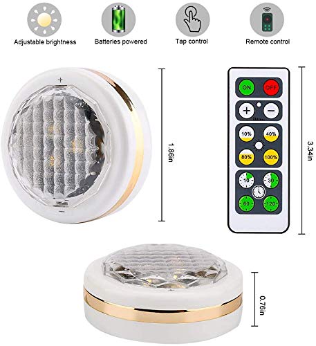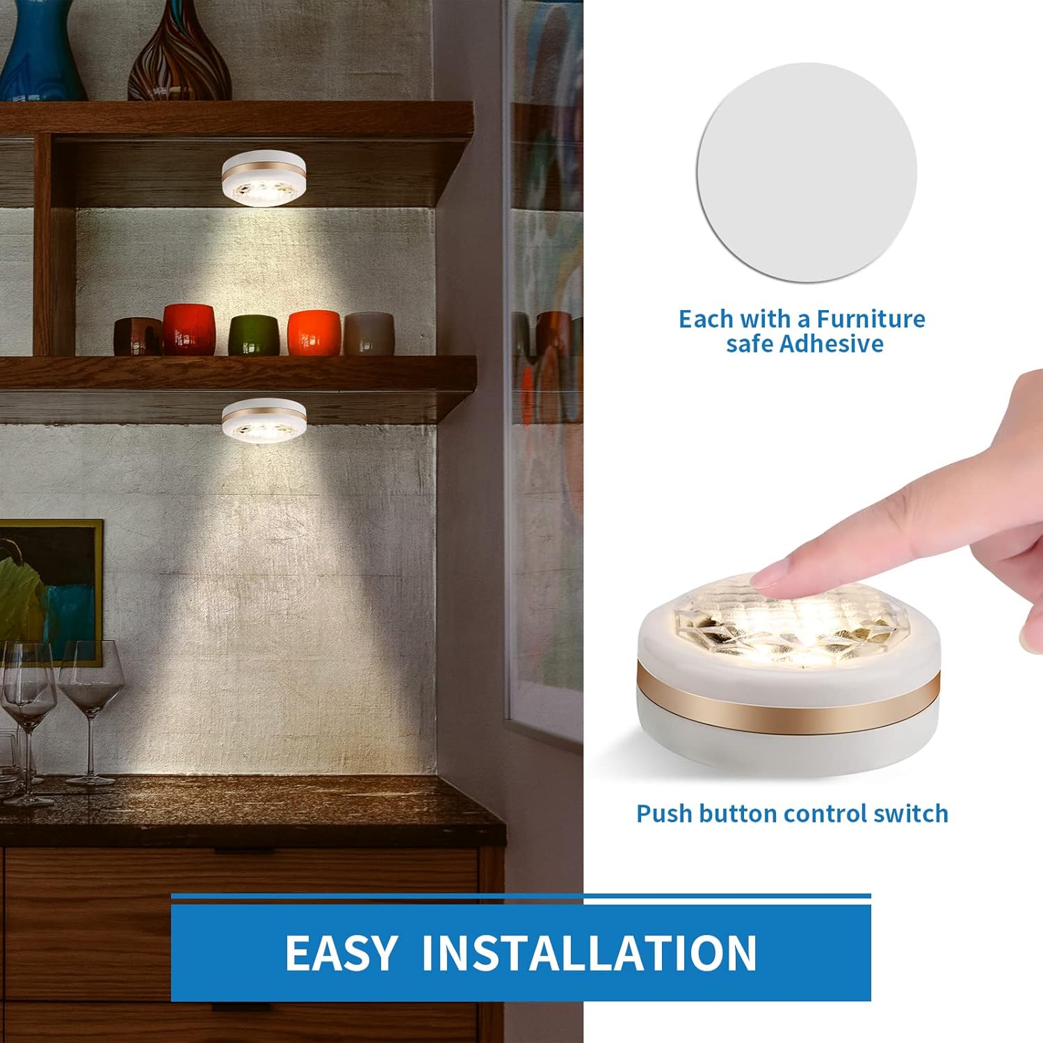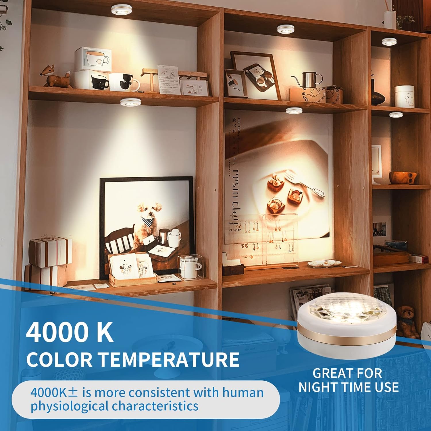 LEASTYLE Wireless LED Puck Lights with Remote Control 6 Pack, LED Under Cabinet Lighting, Puck Lights Battery Operated, Closet Light, Under Counter Lighting, Stick on Lights (White)