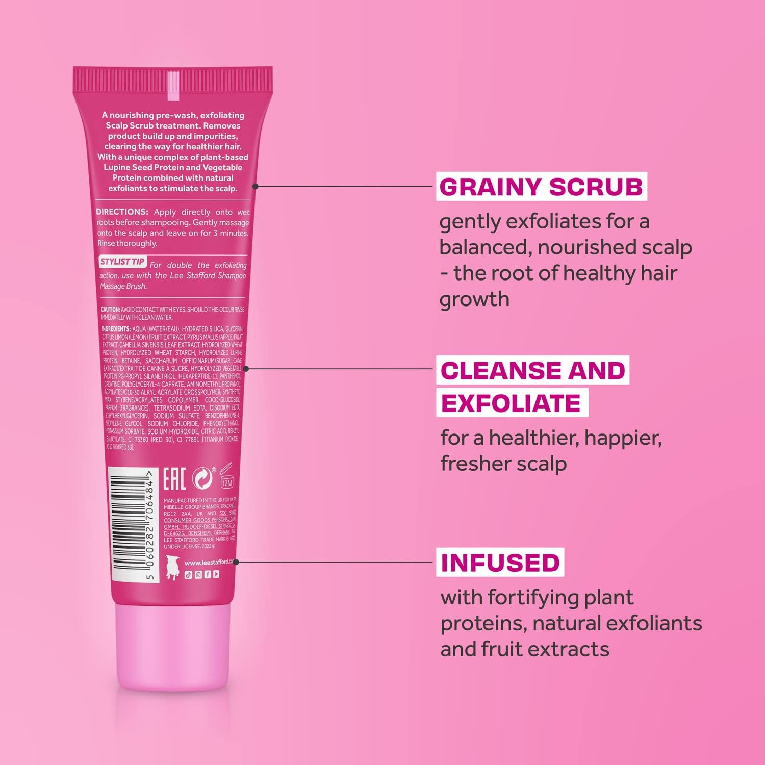 Lee Stafford Hair Growth Scalp Scrub | Grow Strong & Long Collection - Best Stimulating Regrowth Exfoliator Treatment, Great For Cleansing & Purifying For Dry, Dandruff, Damaged Hairs, 100Ml