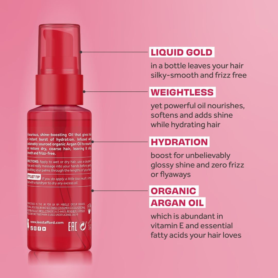 Lee Stafford Miracle Hair Oil | Argan Oil Collection - Best Anti Frizz Styling Oil For Dry & Damaged Hair, Adds Bonding Moisture And Shine To Dull Strands, For Men & Women, After Blowout Coat, 50 Ml