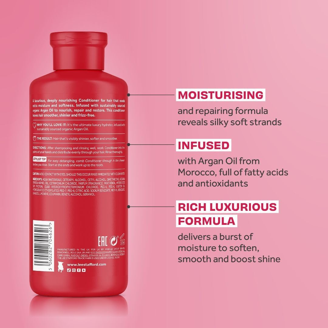 Lee Stafford Moisturizing Conditioner | Argan Oil Collection - Best For Dy, Dull Hair To Repair & Hydrate For Silky Smooth Soft Shine, Salon Grade Gloss Finish, Detangling, Restore Split Ends, 250 Ml