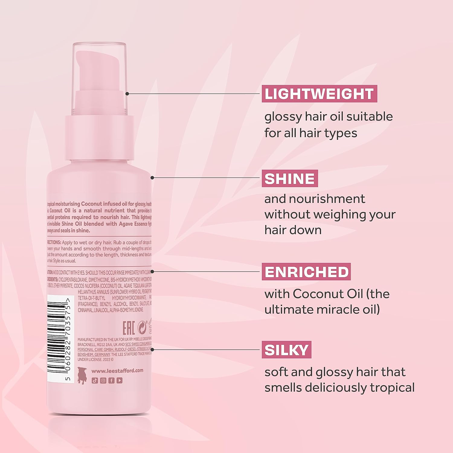 Lee Stafford Shine Hair Oil | Coco Loco Collection - Best Nourishing, Anti-Frizz Styling Oil For Dry & Damaged Hair, Adds Moisture And Shine To Dull Strands, For Men & Women, 75 Ml