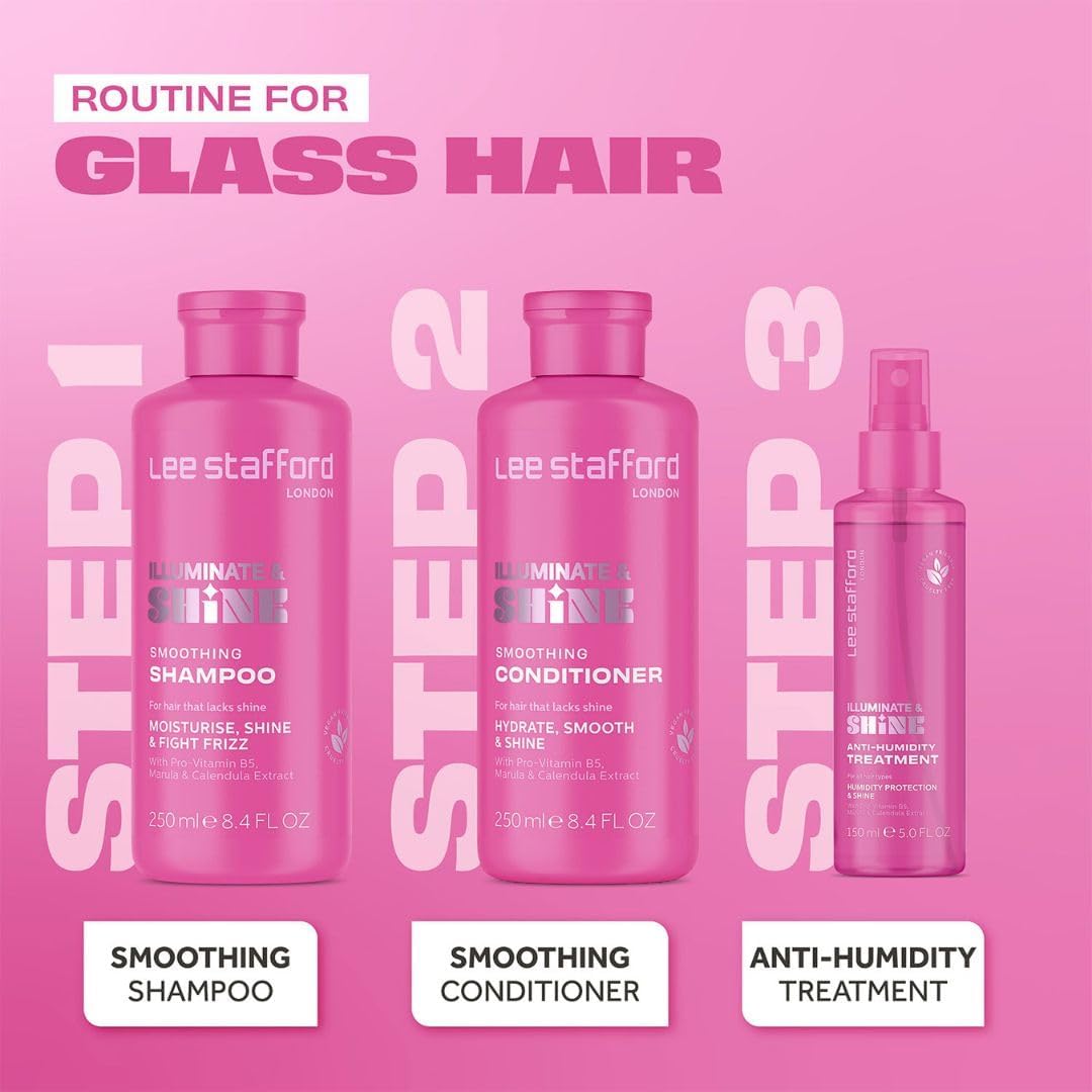 Lee Stafford Smoothing Shampoo | Illuminate & Shine - Best For Dry Dull Hair, Lightweight Clarifying Gel For A High Gloss Sleek Silk Shiny Finish, Infused With Marula Oil For Rich Moisture, 250 Ml