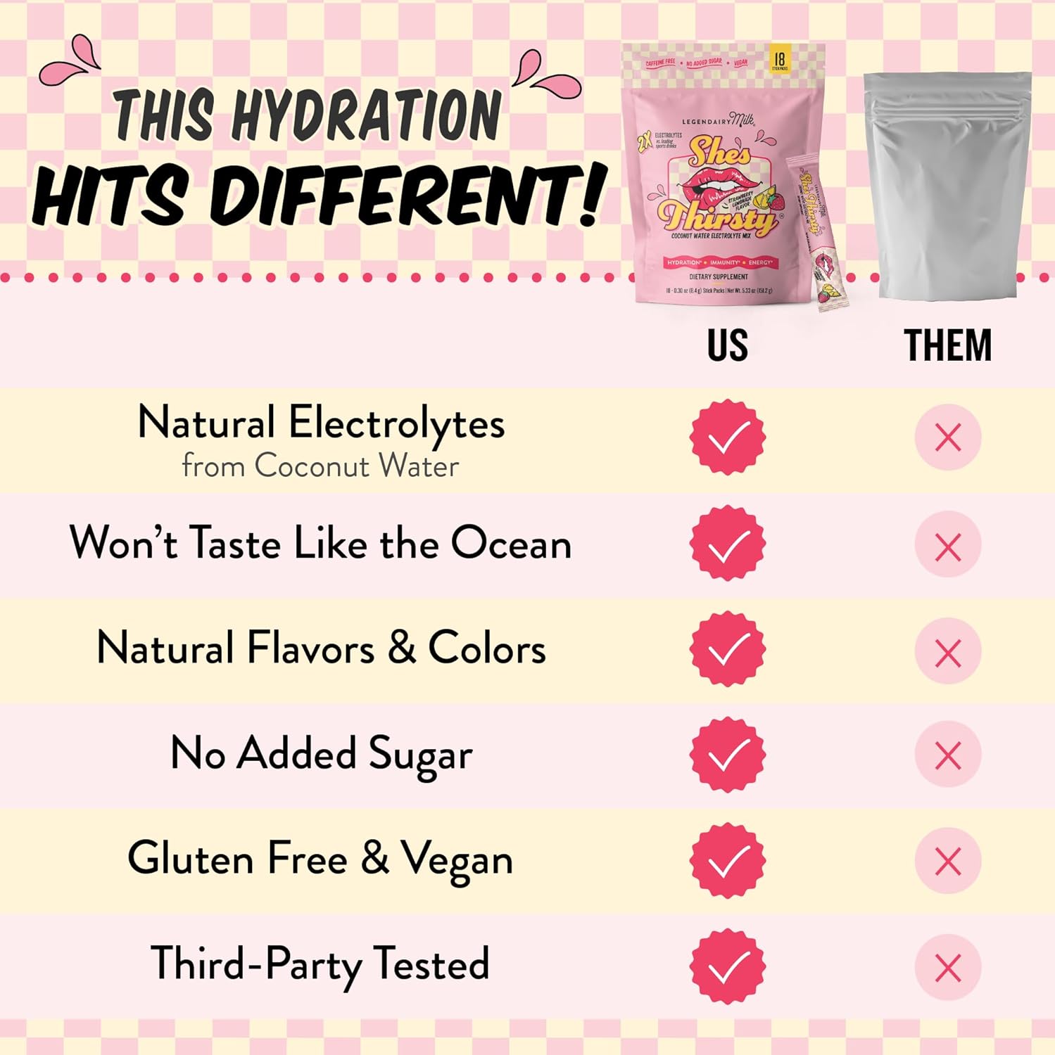 Legendairy Milk She’S Thirsty Hydration Packets | Cortisol Supplement For Stress Relief & Adrenal Support | Coconut Water Electrolytes Powder, No Sugar Added 18 Ct
