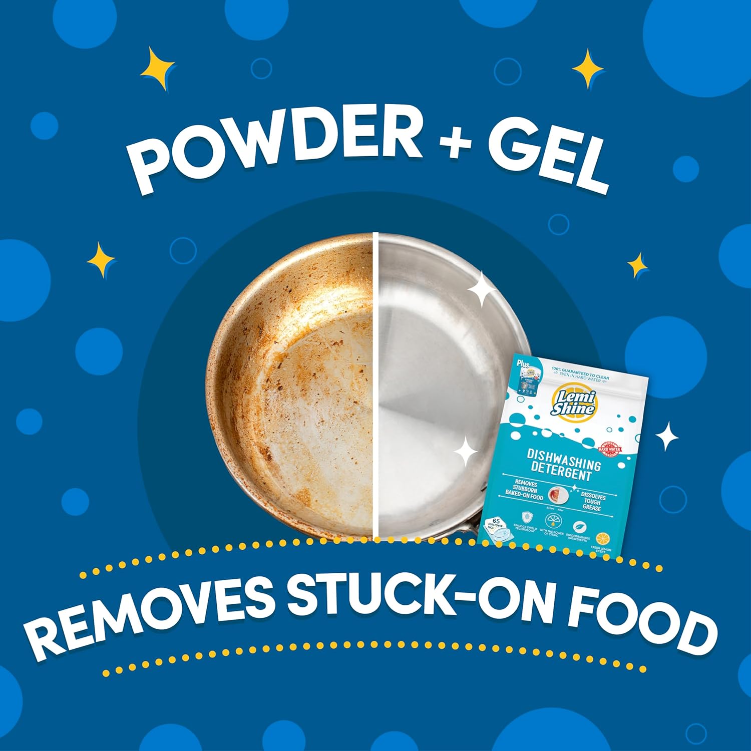 Lemi Shine Natural Dishwasher Pods | All-In-One Powder & Gel Dishwasher Detergent Pods With Powerful Citric Acid | Eco Friendly Dish Wash Cleaning Supplies (65 Count)