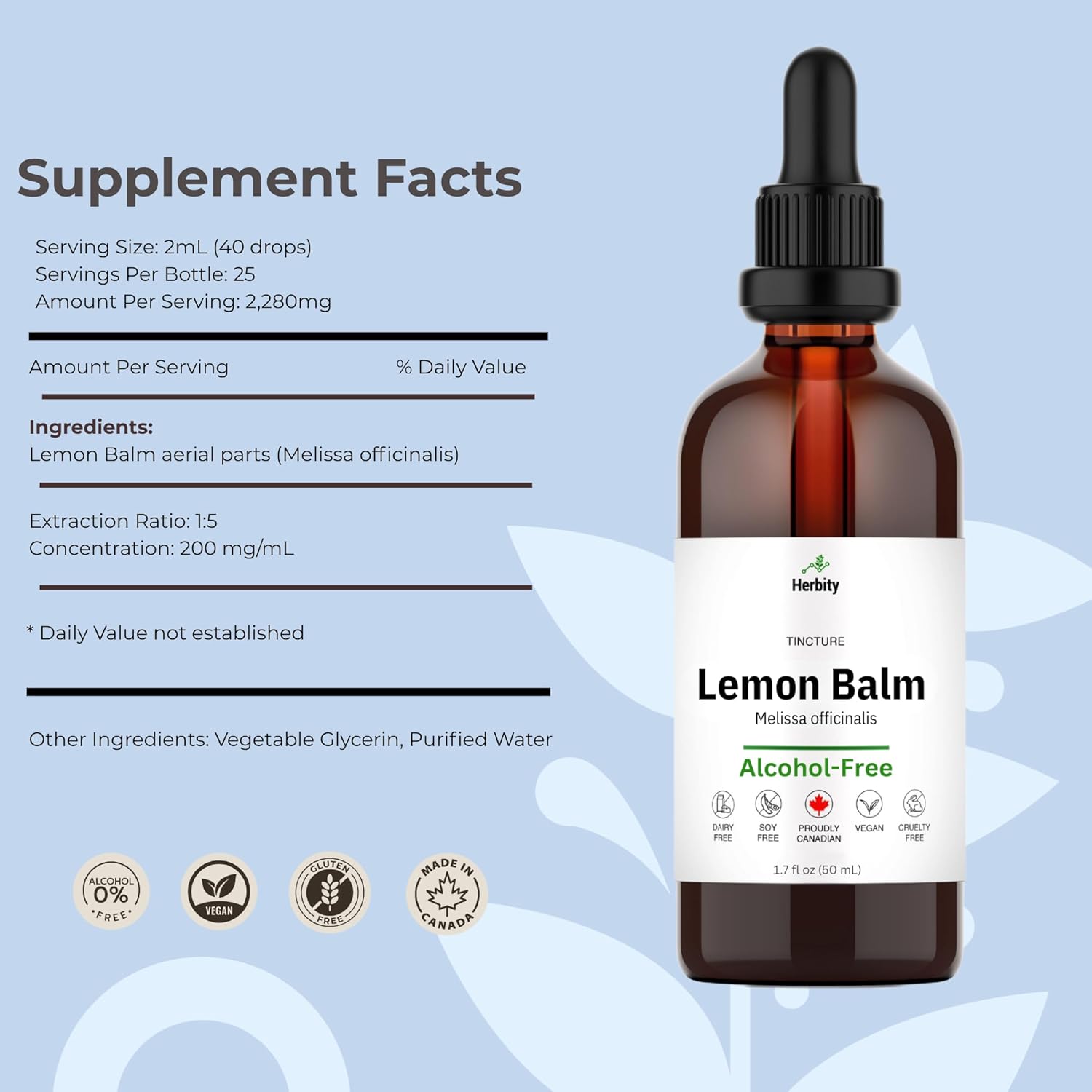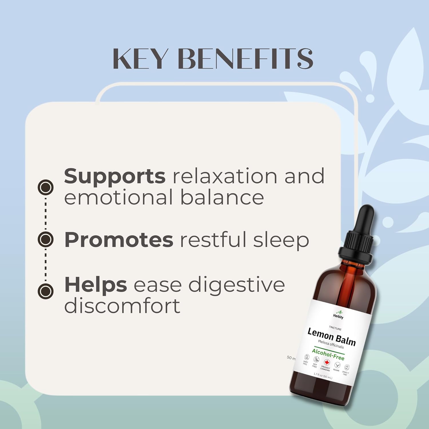Lemon Balm Tincture – Alcohol-Free Herbal Supplement For Relaxation, Calm & Digestive Support – Vegan, Glycerin-Based Extract – 1.7 Fl Oz (50 Ml)