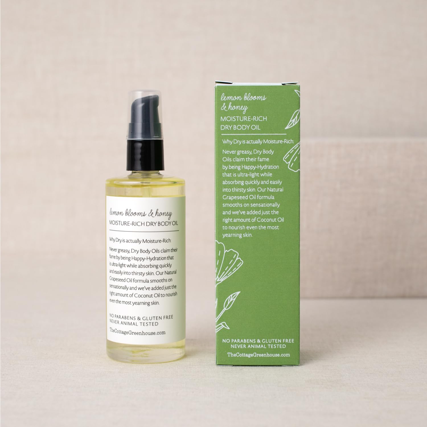 About this item Hydrating Dry Body Oil for Women: Revitalizing Lemon and a hint of Honey join forces to amplify your mood. Rich in Vitamin C and primed to hydrate skin, lemon adds the perfect invigorating balance to bright honeyed florals Nourish the Driest Skin: This women's moisturizing body oil is infused with a natural Grape Seed Oil formula that smooths on sensationally with just the right amount of Coconut Oil to nourish even the driest of skin Moisture-Rich Ingredients: Dry body oils are moisture-rich and never greasy. This happy-hydration treatment is ultra-light while absorbing quickly and easily into thirsty skin A Sheer Spa Glow: Massage until all that remains is the sheer, satin veil that is your “just-from-the spa” glow. This vegan dry body oil for women is great for bath touches, softer shaves, cuticles, and even layered under lotion for deep skin conditioning Making Beauty More Beautiful: Margot Elena has spent over 20 years lovingly developing brand worlds for a delightful, everyday escape. From intricate packaging to luxurious formulas and exquisite fragrances, each element is carefully crafted See more product details,Hydrating Dry Body Oil for Women: Revitalizing Lemon and a hint of Honey join forces to amplify your mood. Rich in Vitamin C and primed to hydrate skin, lemon adds the perfect invigorating balance to bright honeyed florals,Nourish the Driest Skin: This women's moisturizing body oil is infused with a natural Grape Seed Oil formula that smooths on sensationally with just the right amount of Coconut Oil to nourish even the driest of skin,Moisture-Rich Ingredients: Dry body oils are moisture-rich and never greasy. This happy-hydration treatment is ultra-light while absorbing quickly and easily into thirsty skin,A Sheer Spa Glow: Massage until all that remains is the sheer, satin veil that is your “just-from-the spa” glow. This vegan dry body oil for women is great for bath touches, softer shaves, cuticles, and even layered under lotion for deep skin conditioning,Making Beauty More Beautiful: Margot Elena has spent over 20 years lovingly developing brand worlds for a delightful, everyday escape. From intricate packaging to luxurious formulas and exquisite fragrances, each element is carefully crafted