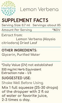 Lemon Verbena B120 Alcohol-Free Herbal Extract Tincture, Lemon Verbena (Aloysia Citriodora) Dried Leaf (4 Fl Oz)