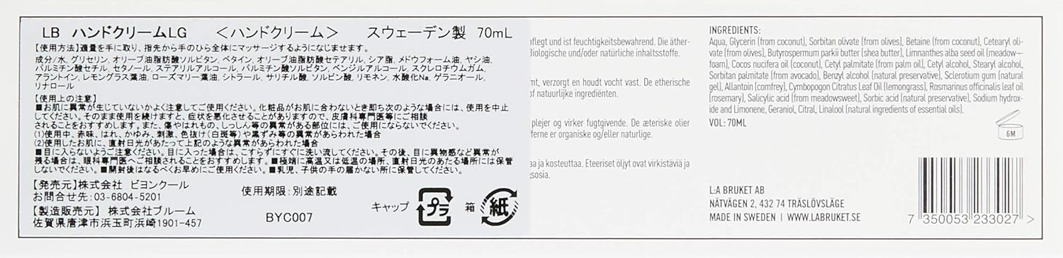 Lemongrass Hand Cream By L:A Bruket (70 Ml Tube)