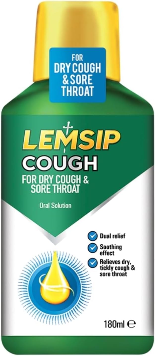Lemsip Cough Syrup, 180Ml, Paracetamol, Cough Medicine, Dry Cough, Tickly Cough, Sore Throat Relief, Catarrh And Mucus Relief, Dual Relief, Soothing, Decongestants, Medication