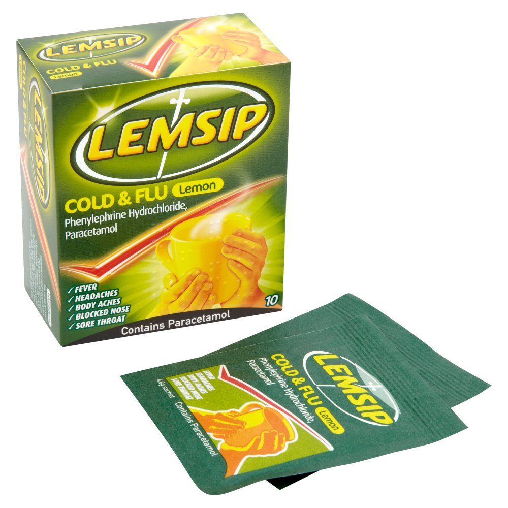 Lemsip Original Strength Cold + Flu Lemon Hot Drink 10 sachets