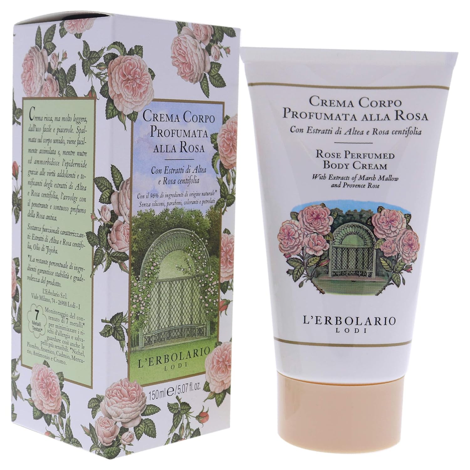 Experience luxurious hydration with this moisturizing body butter for women, designed to soften and tone your skin while leaving behind the elegant scent of Old Rose. This rich yet airy body cream for extremely dry skin absorbs effortlessly, providing the deep nourishment your skin craves. Ideal for daily use, it's a pampering body butter for women dry skin formula is enriched with botanical extracts like Provence Rose and Marsh Mallow for skin that feels smooth, supple, and revived. Whether you're in need of a high-performing body moisturizer for women or a soothing all-over hydrator, L'Erbolario's Perfumed Body Cream Rose offers a beautifully balanced solution. As a dry skin moisturizer, it comforts rough patches while enhancing the skin’s natural radiance. Its gentle, quick-absorbing texture makes it ideal as a body butter cream for those who want rich care without greasiness. More than just a body cream moisturizer, this floral-scented essential is part of a tradition of Italian-crafted body butters, pure care inspired by nature. Enjoy smooth, delicately perfumed skin every day with a product that blends elegance, performance, and clean ingredients,Moisturizes and Comforts Skin: This indulgent body moisturizer provides lasting hydration, leaving skin soft, smooth, and well cared for. The rich texture of our moisturizing cream melts into the skin, helping to restore comfort and suppleness,Softens and Tones Skin: Enriched with Provence Rose and Marsh Mallow extracts, this body cream for women delivers softening and toning care. Our body moisturizer for dry skin supports skin that feels smoother and delicately pampered,Nourishes with Lightweight Care: This body butter for women combines a luscious yet airy formula with moisturizing action. Our body cream for dry skin absorbs easily, nourishing without heaviness,Floral Scent of Old Rose: The elegant fragrance of Old Rose in our body butter for dry skin lingers beautifully on the skin. This dry skin cream surrounds you in a sumptuous and timeless floral aroma,Italian Quality Rooted in Nature: Made with plant extracts cultivated in-house, our body skin care products offer clean, effective care. Cruelty-free and free from silicones and parabens, our body moisturizers are safe for skin, kind to nature