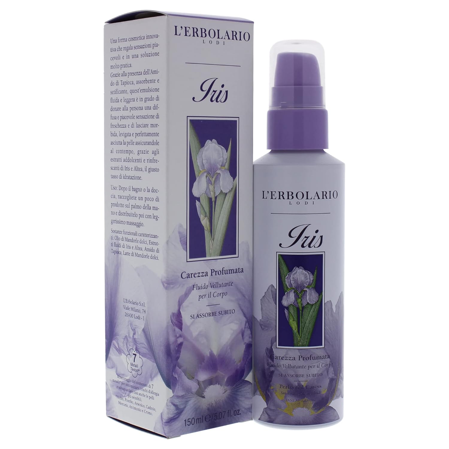 L'Erbolario Iris Perfumed Caress Smoothing Body Fluid - Body Moisturizer To Hydrate, Protect - Liquid Body Lotion For Women - All Skin Types - 5.1 Oz