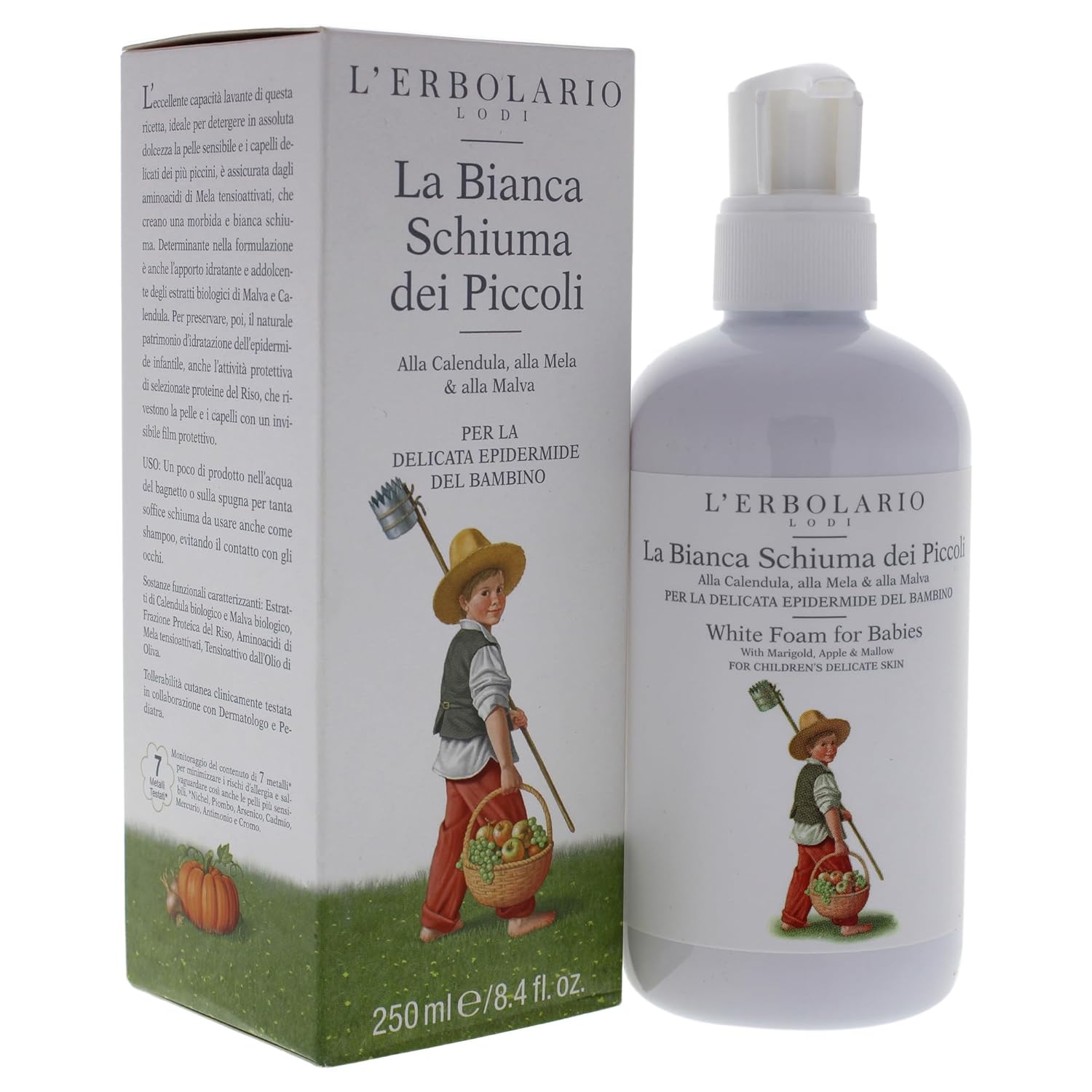 About this item GENTLY WASHES SENSITIVE SKIN: This cleansing kids foam effectively washes your child's delicate skin. Moisturizing and soothing ingredients will ensure that your child's body will remain perfectly soft for longer. KEEPS YOUR CHILD'S BODY HYDRATED: Use our essential kids foam to preserve the natural moisture of your child's skin while coating it in a protective layer that helps shield them from dryness. FOUNDED IN NORTHERN ITALY: Originating as a small artisan herbalist shop, L'Erbolario was born in Lodi, Italy by Franco Bergamaschi and his wife Daniela Villa in 1978. WE AIM TO MINIMIZE ALLERGIES: We monitor the content of seven heavy metals (including nickel, chromium, cadmium, lead and mercury) on each batch of every product to minimize allergies. ENVIRONMENTAL SUSTAINABILITY: All our products are organic, cruelty free, and good for mankind and the environment. We believe in natural beauty and won't settle for anything less than certified quality.  See more product details,GENTLY WASHES SENSITIVE SKIN: This cleansing kids foam effectively washes your child's delicate skin. Moisturizing and soothing ingredients will ensure that your child's body will remain perfectly soft for longer,KEEPS YOUR CHILD'S BODY HYDRATED: Use our essential kids foam to preserve the natural moisture of your child's skin while coating it in a protective layer that helps shield them from dryness,FOUNDED IN NORTHERN ITALY: Originating as a small artisan herbalist shop, L'Erbolario was born in Lodi, Italy by Franco Bergamaschi and his wife Daniela Villa in 1978,WE AIM TO MINIMIZE ALLERGIES: We monitor the content of seven heavy metals (including nickel, chromium, cadmium, lead and mercury) on each batch of every product to minimize allergies,ENVIRONMENTAL SUSTAINABILITY: All our products are organic, cruelty free, and good for mankind and the environment. We believe in natural beauty and won't settle for anything less than certified quality