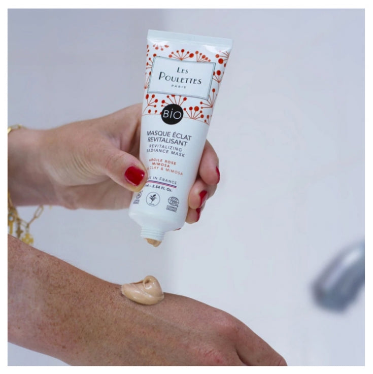 Les Poulettes Paris Revitalizing Radiance Mask Pink Clay Organic 75Ml Is A Face Mask With Gentle Natural Formula Based On Pink Clay, Recognised For Its Regenerative And Rebalancing Properties. Enriched In Rose Extract And Mimosa Wax Forming A Protective Film, This Mask Gently Fragranced Offers A Skin Visibly Replumped And Toned For A Complexion Radiant Of Health. Vegan. 100% Of Total Is Of Natural Origin. 32% Of Total Ingredients Are From Organic Farming. Cosmos Organic Certified By Ecocert Greenlife According To Cosmos Standard. Made In France