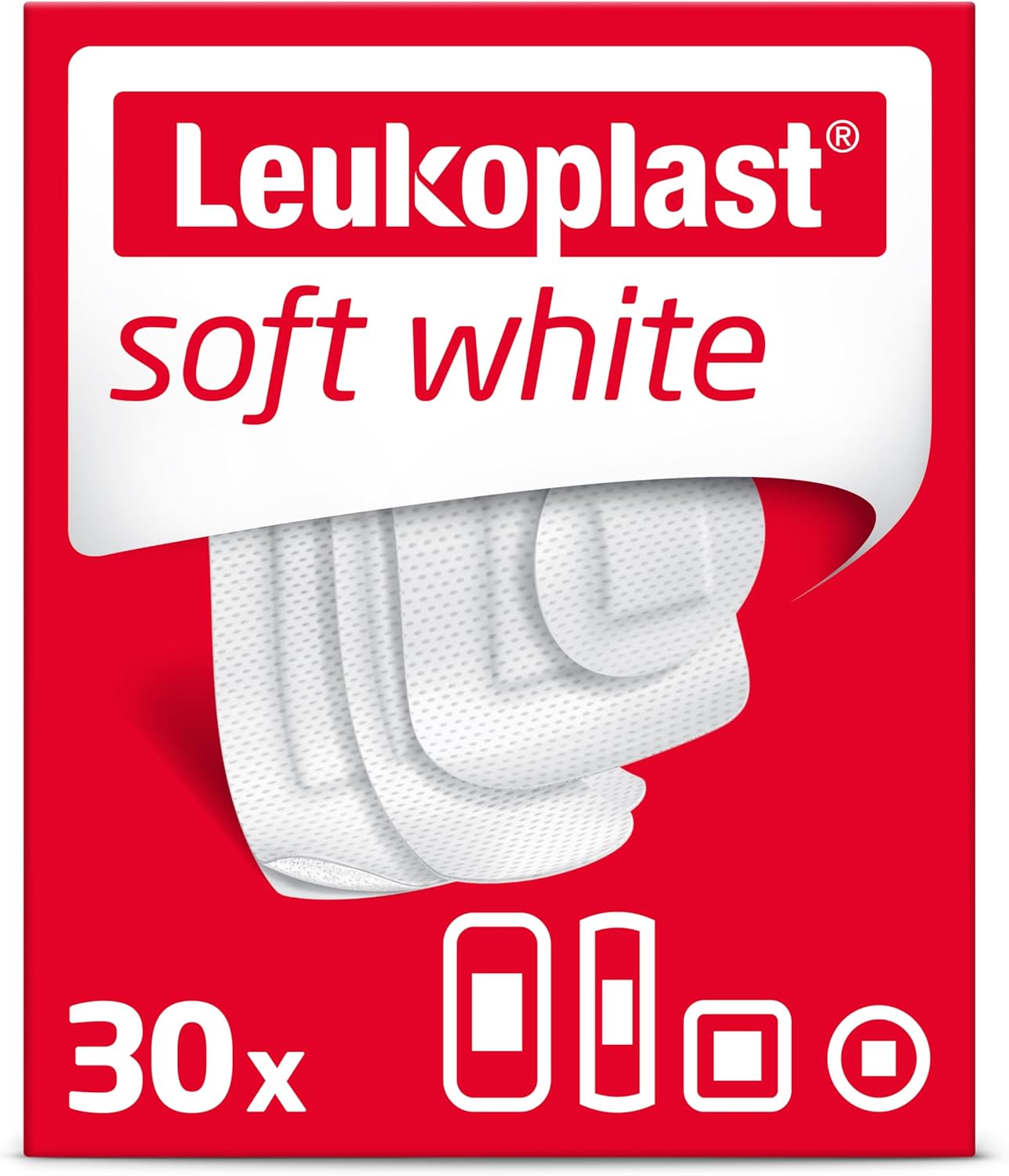 Leukoplast Soft White - Non-Sterile Wound Dressing Strips - Skin-Friendly, Breathable And Absorbent, First-Aid Plasters - White - 2 Assorted Sizes - Box Of 30